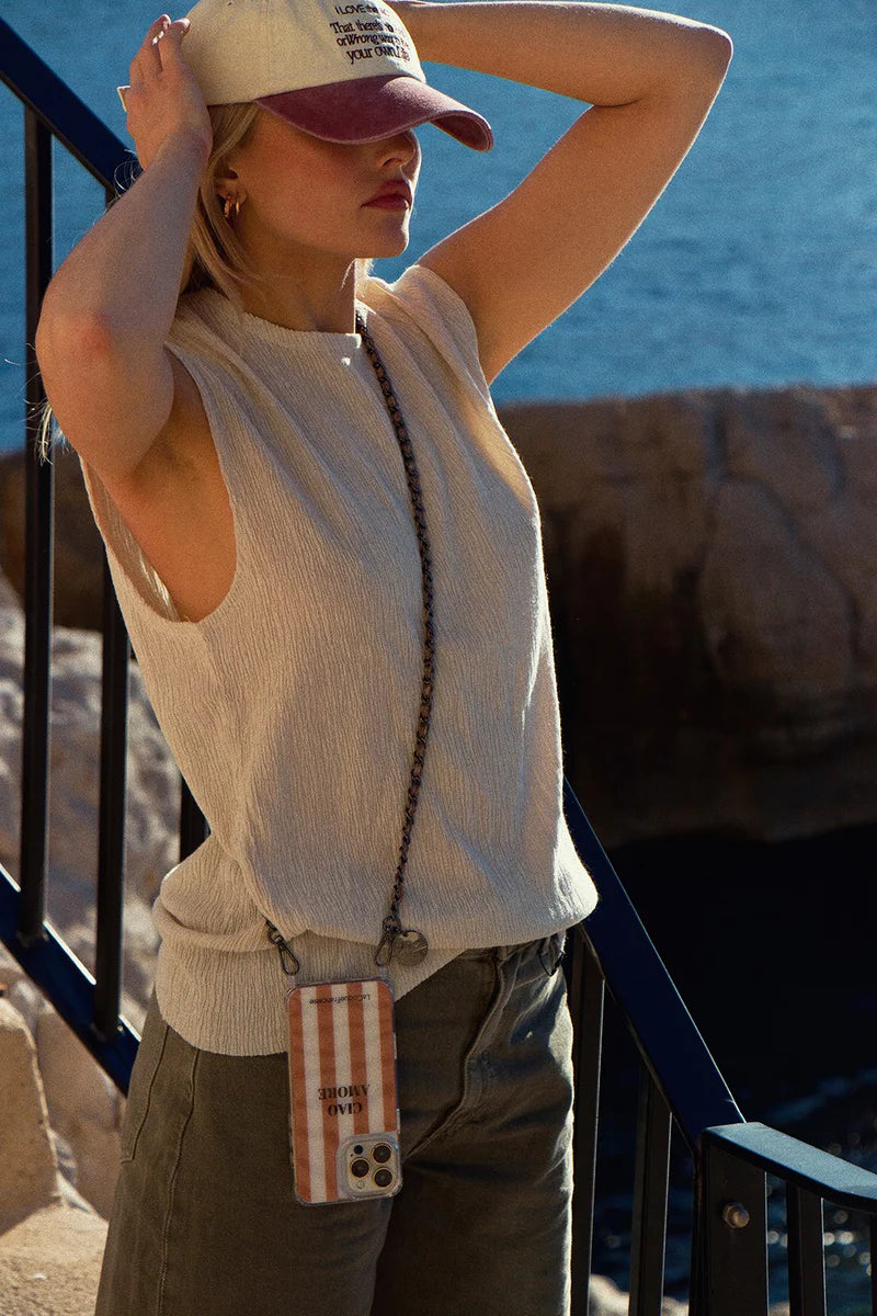 The must-have accessory! No need to search for your phone at the bottom of the bag or on your desk, it follows you everywhere. Perfect for hands-free while doing something else, our straps can be worn on the shoulder, in the hand or even hung on your bag to have a new handle. You can remove the chain easily and at any time, and exchange it according to your desires and outfits.