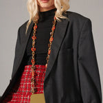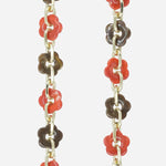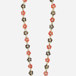 The jewellery chain measures 120 cm, in resin. This comes with brown and orange resin flowers with golden links intertwined.