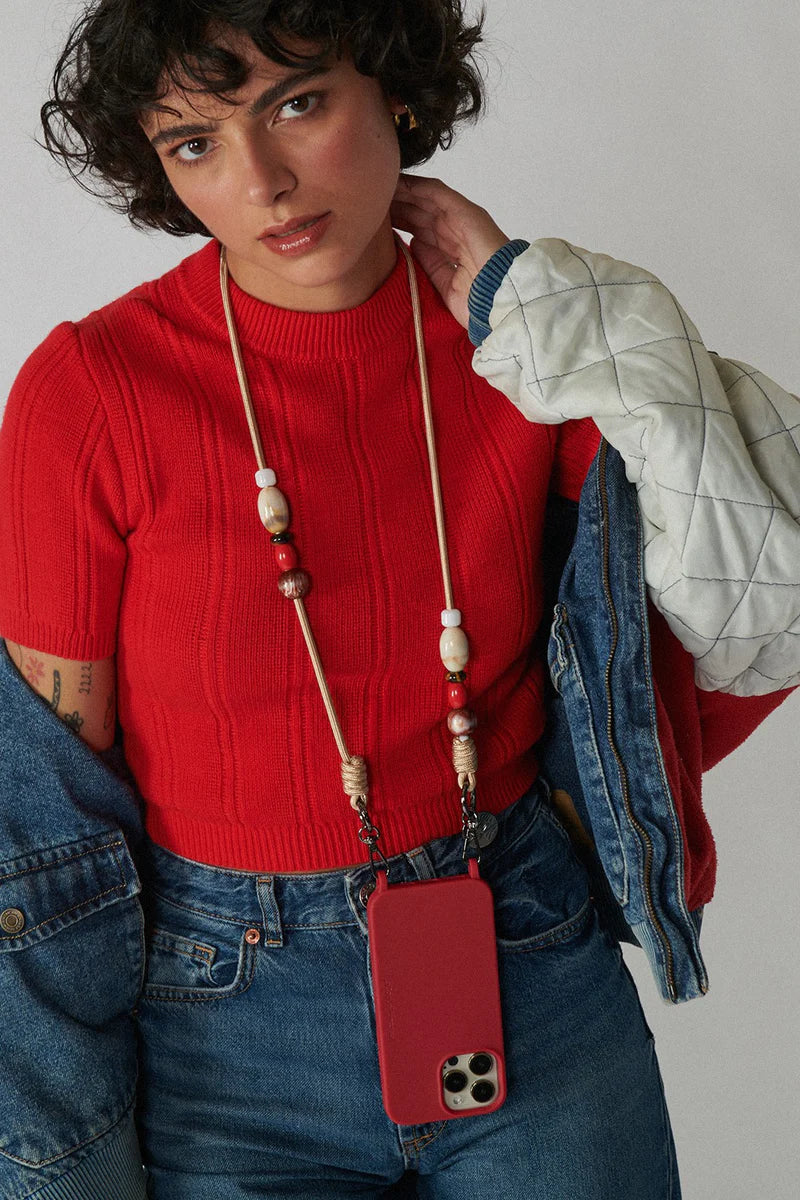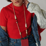 No need to look for your phone at the bottom of the bag or on your desk, it will follow you everywhere. Perfect for having your hands free while doing other things, the chains can be worn as a shoulder strap or necklace.