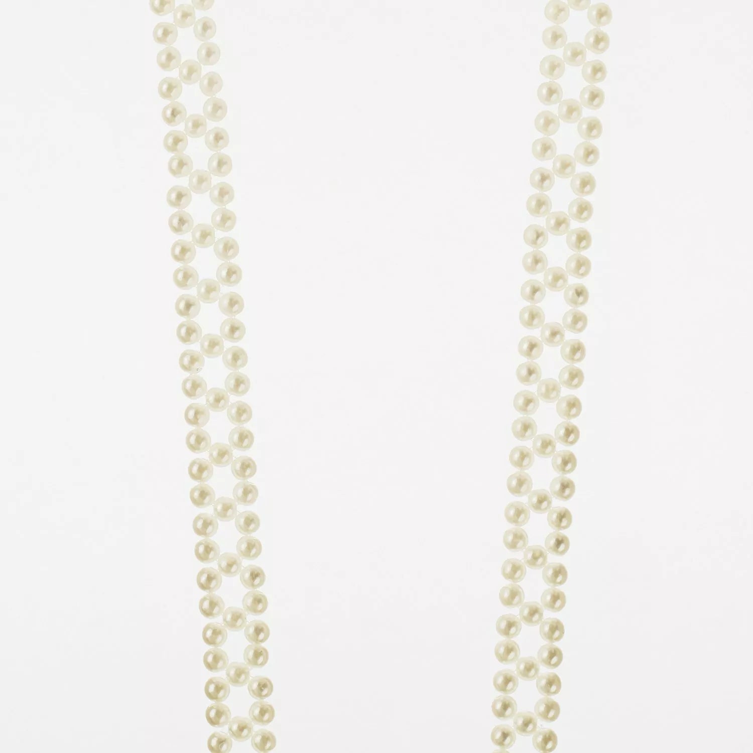 The jewellery chain measures 120 cm, in resin. Comes with small round white pearls beaded like a chain.