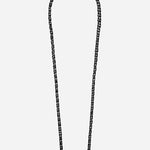The jewellery chain measures 120 cm, in black leather and black coloured metal.