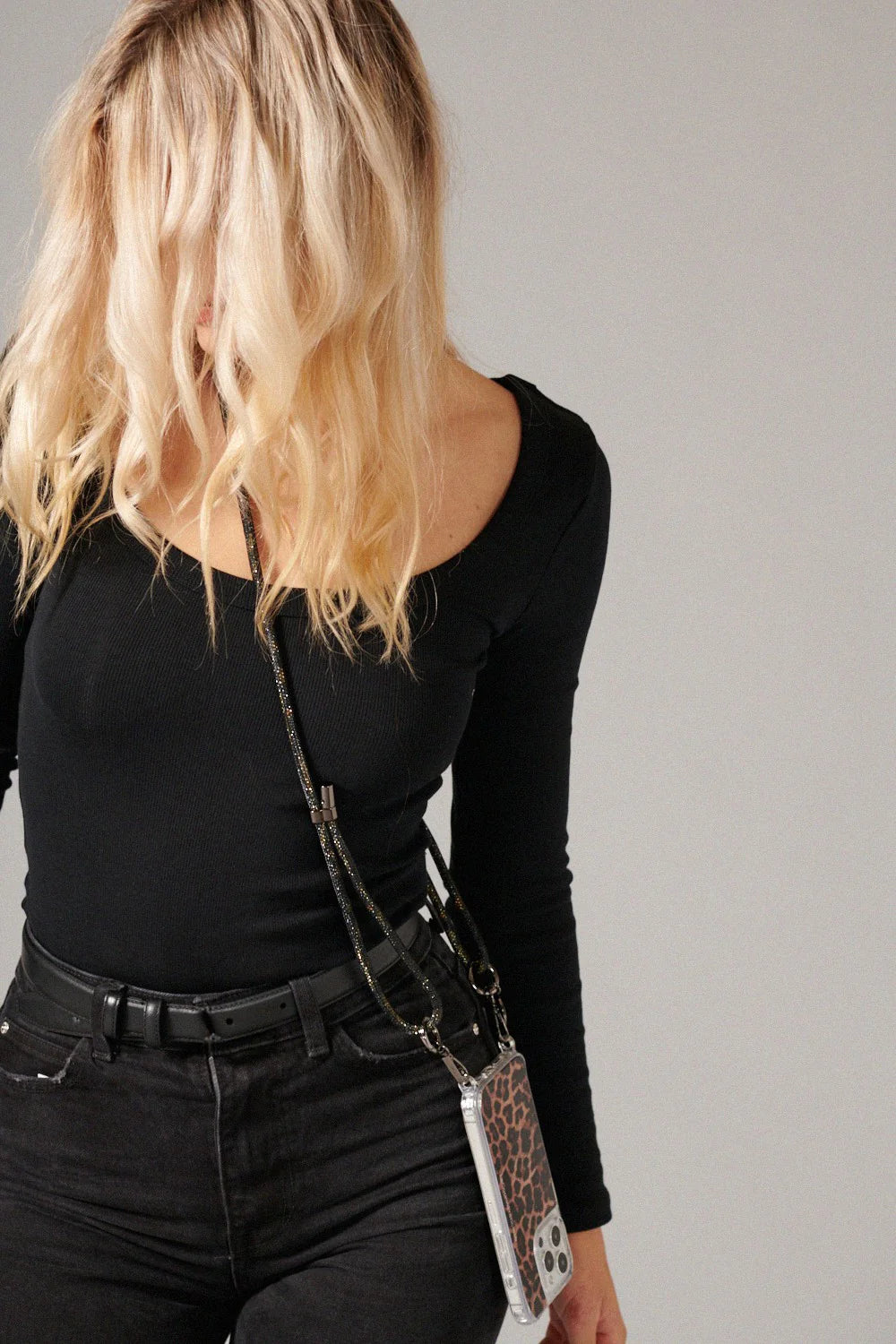 No need to look for your phone at the bottom of the bag or on your desk, it will follow you everywhere. Perfect for having your hands free while doing other things, the chains can be worn as a shoulder strap or necklace.