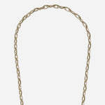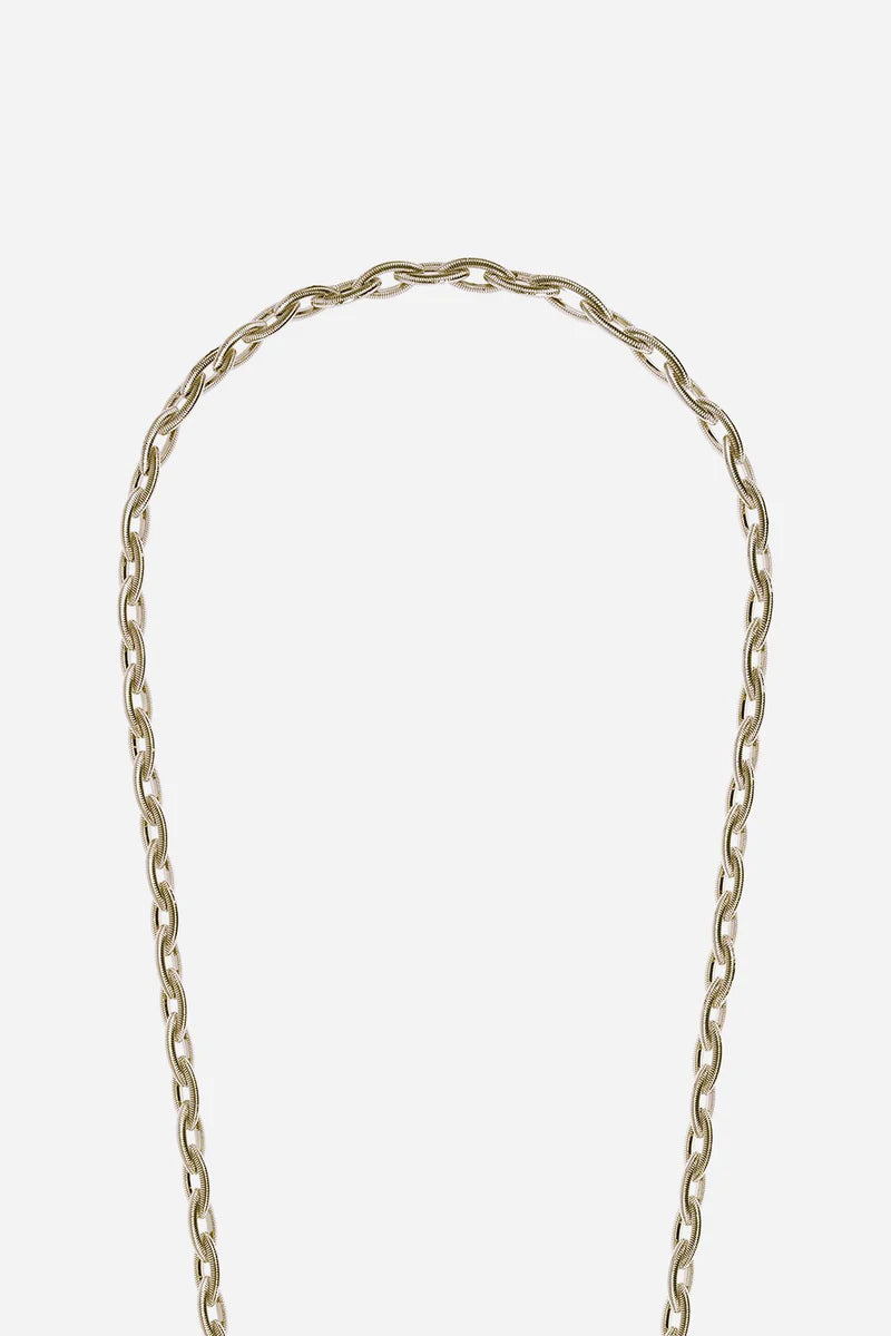 The jewellery chain measures 120 cm, in metal. This comes in oval golden links.