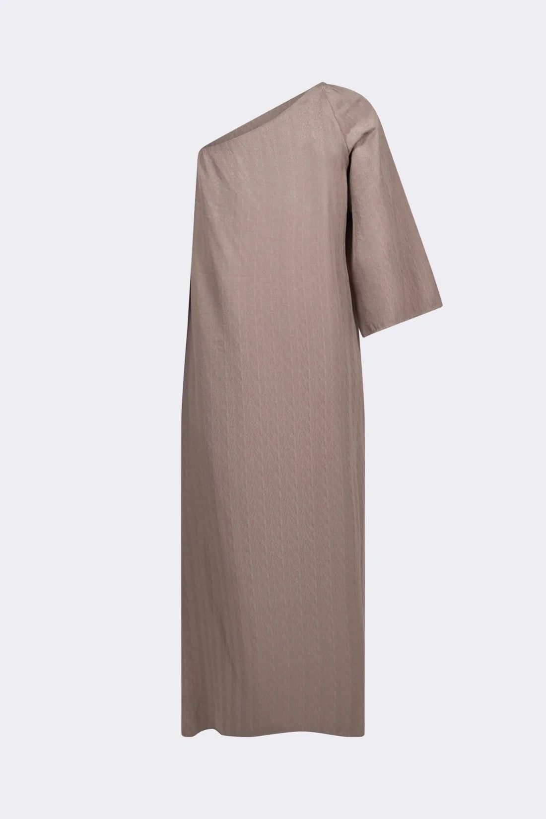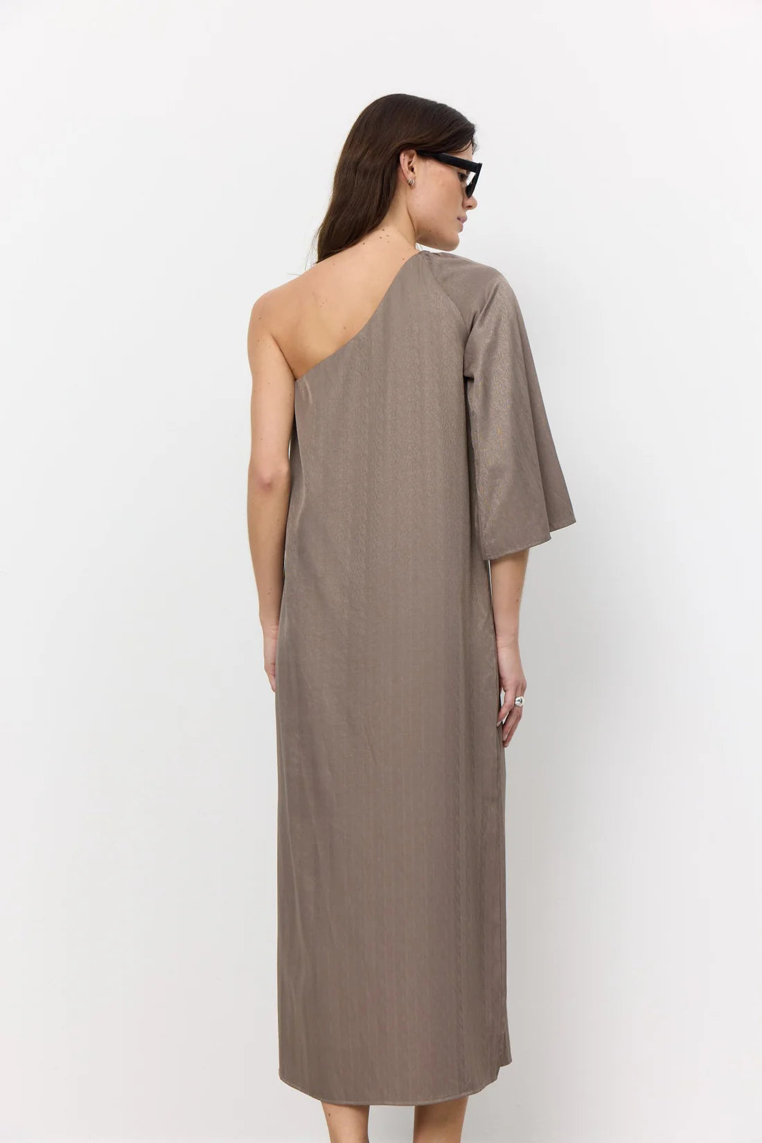 Gilda 3 is a feminine dress made out of a soft viscose and polyester blend. The dress has a one-shoulder look with a voluminous fit and a voluminous sleeve. Style it with a pair of ballerinas for a feminine look.