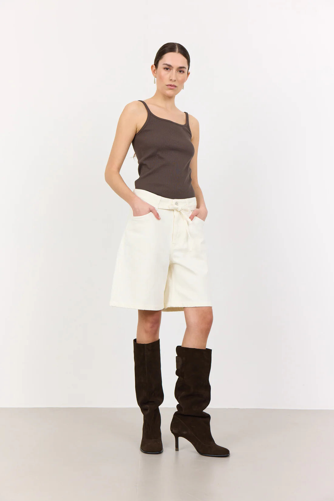 LR-KOSA 10 are comfortable bermuda shorts made from 99% Organic cotton, 1% Elastane. The design includes a belt, a button closure, and pockets for functionality. Pair them with a variety of tops for a relaxed look suitable for multiple occasions.