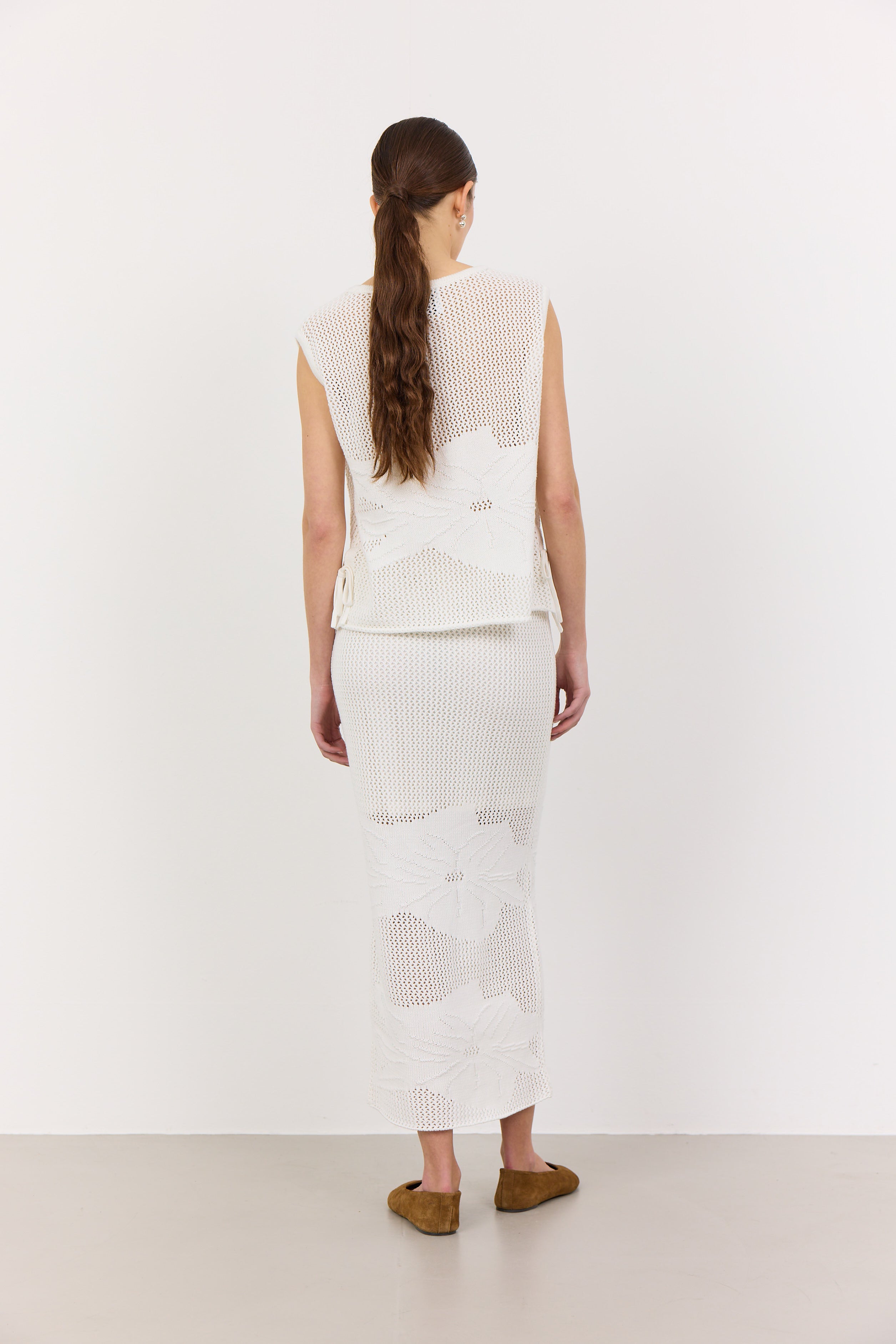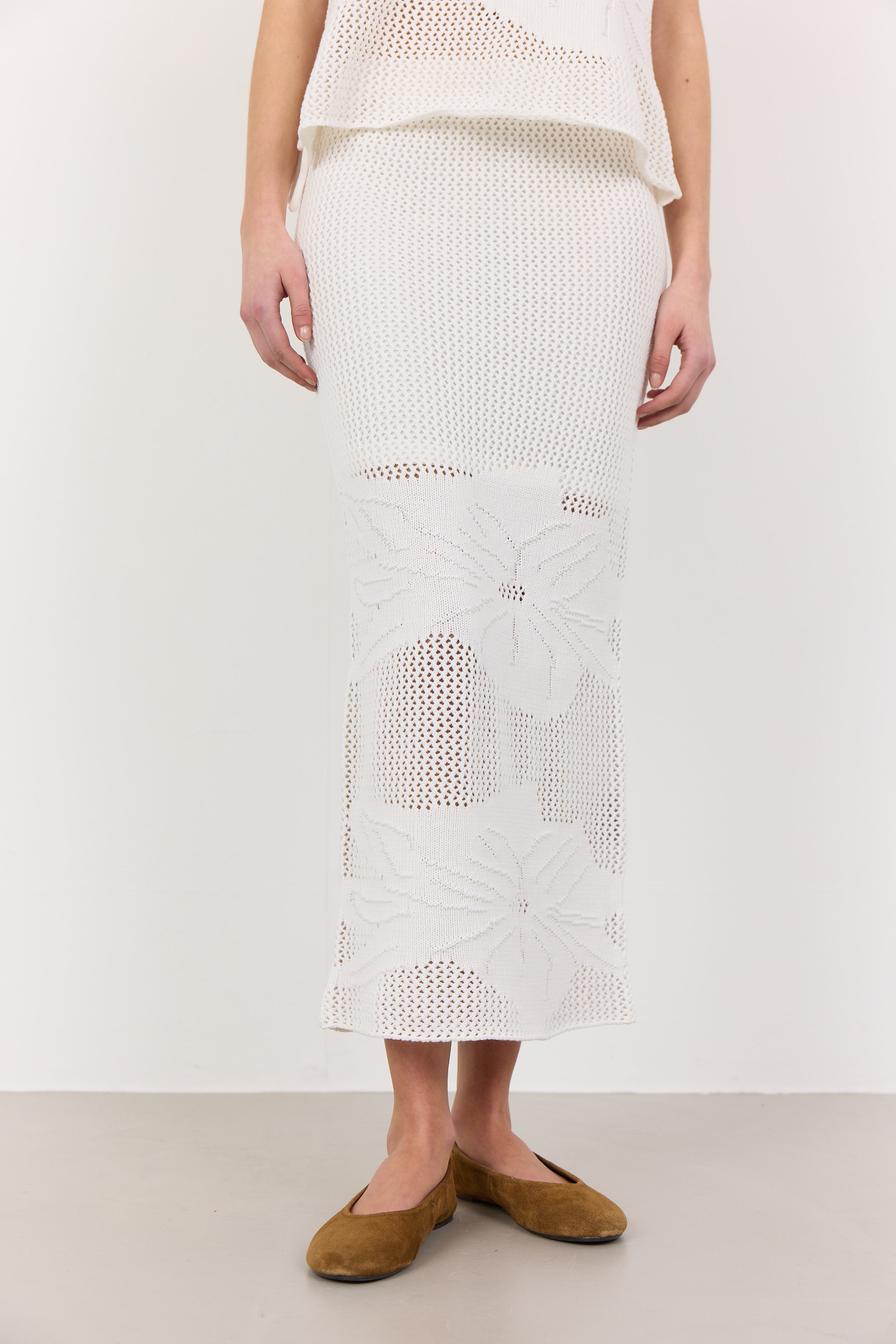 LR-LIAN 2 is a beautiful crochet skirt crafted from 100% organic cotton. This skirt features a textured weave with a delicate alternating pattern, an elastic waist and a maxi length. Pair it with our matching top and some simple heels for a complete and elegant look.