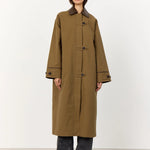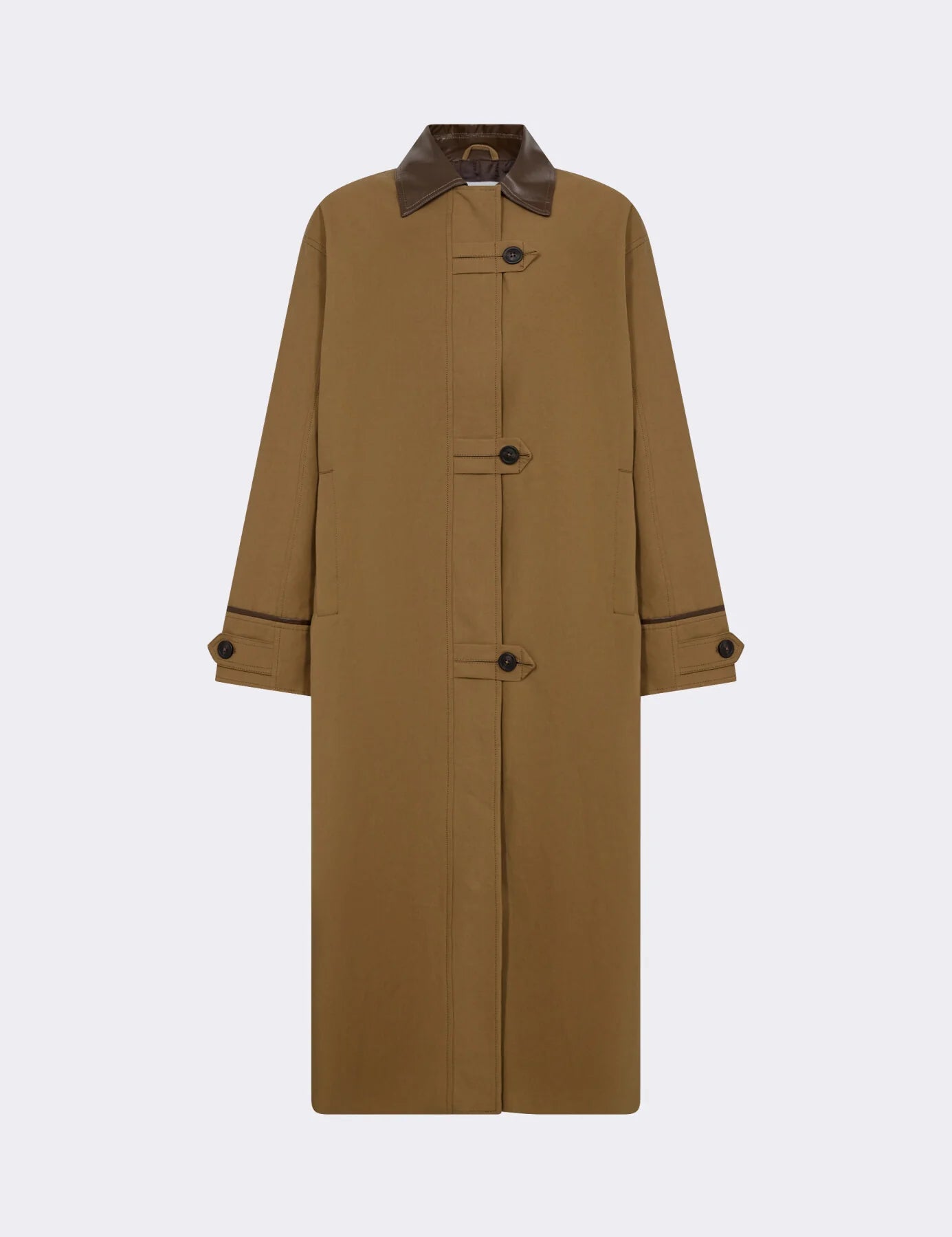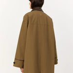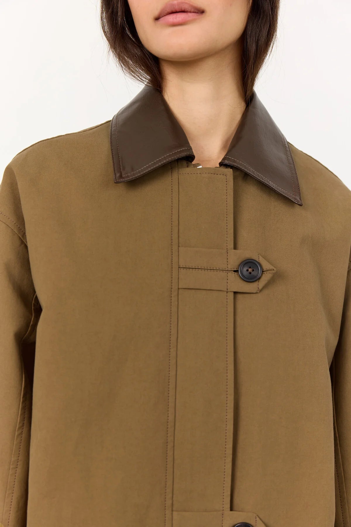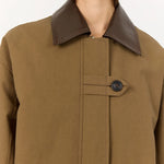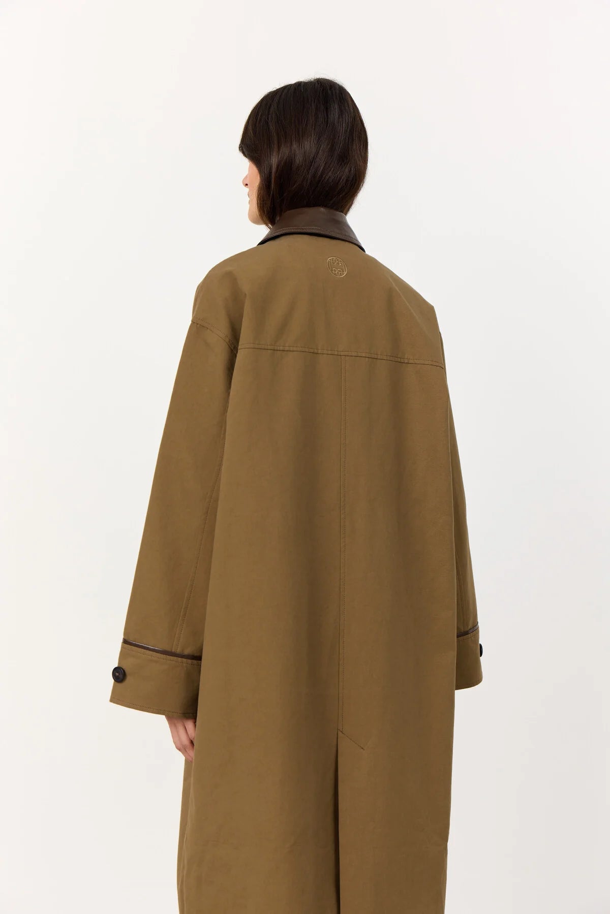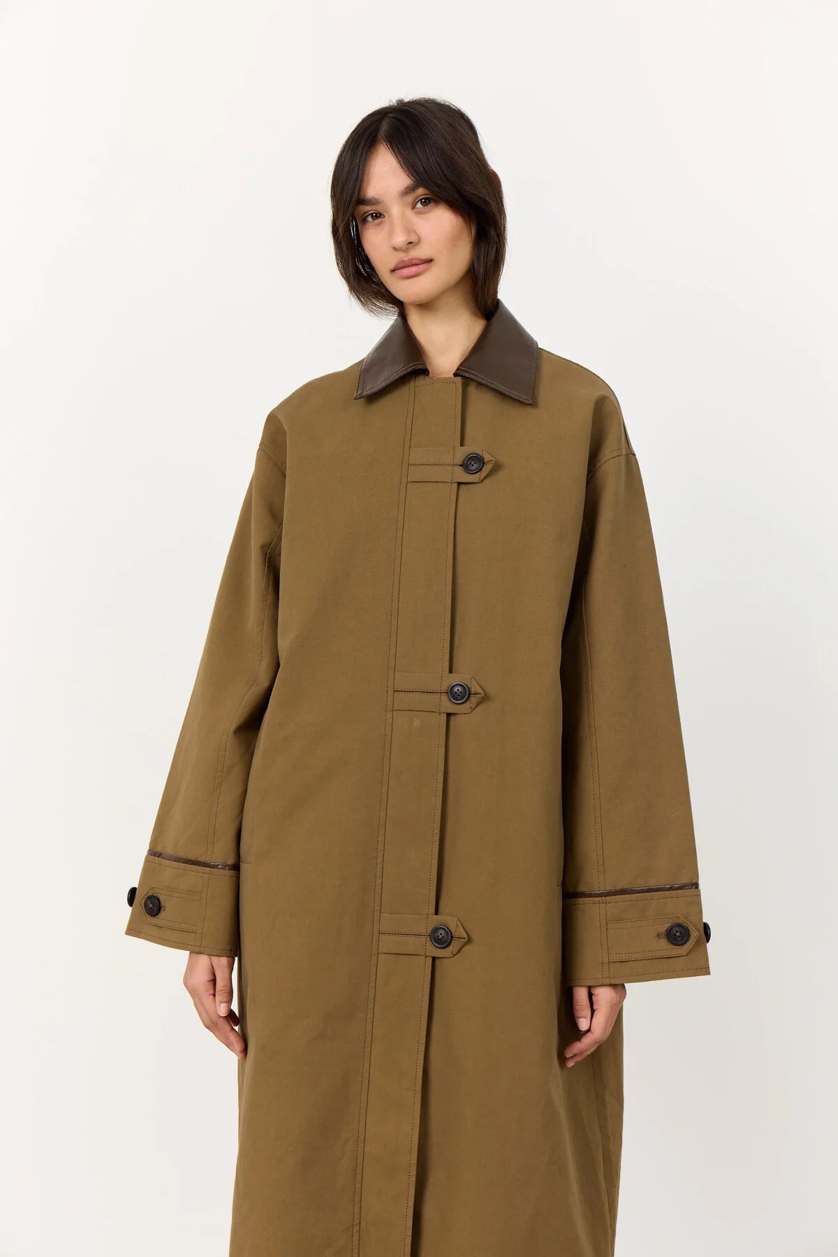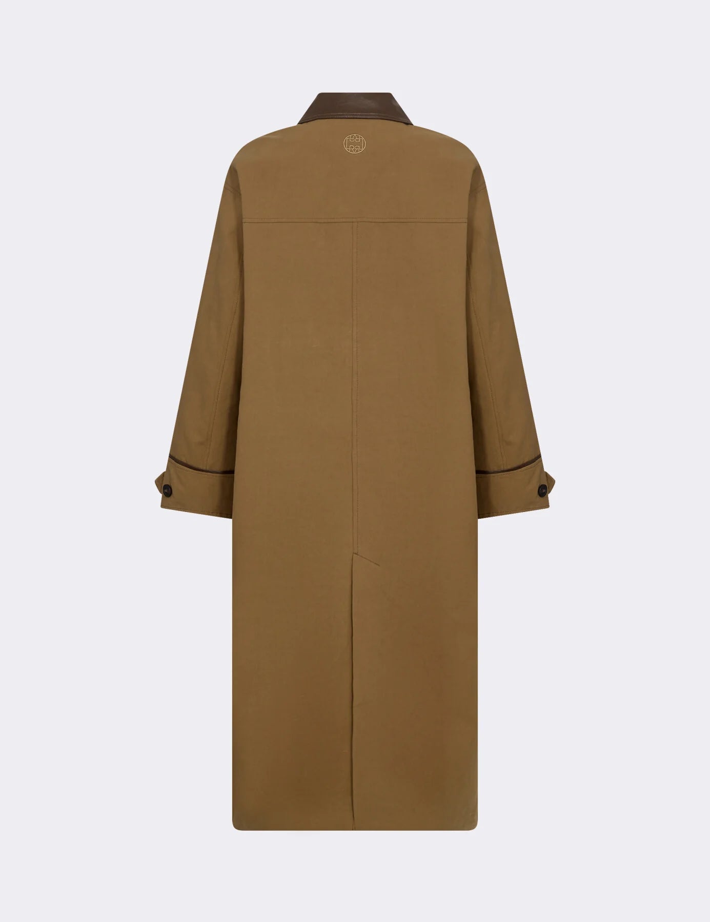LR-MAGGIE 2 is a classic coat made from 100% Cotton. It includes a leather collar, button closures, long sleeves, and a neat, minimalistic design. Pair it effortlessly with tailored trousers and a crisp shirt for a refined look.
