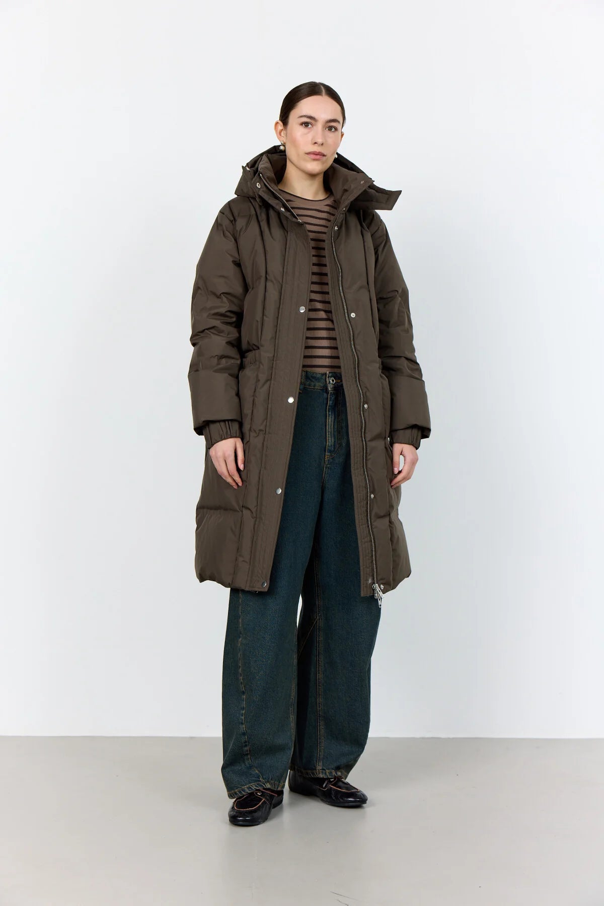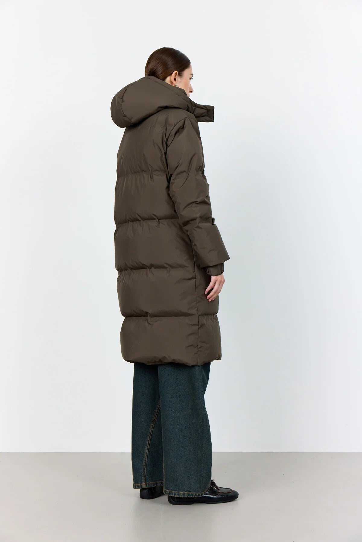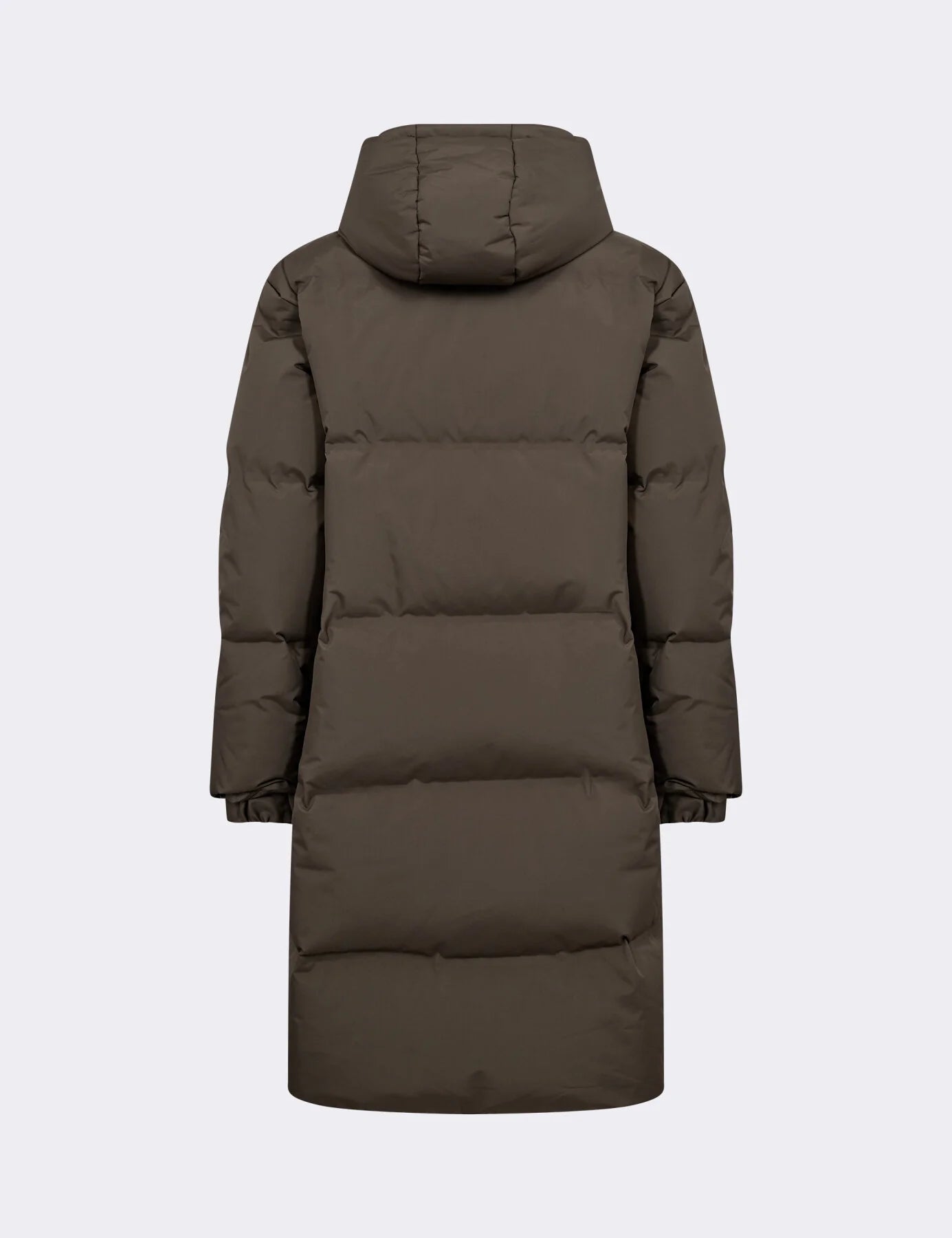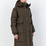 LR-MONA 6 is a warm puffer made from 100% Polyester. This coat features a high collar, buttons, a long length, and a quilted design. Pair it with boots and a scarf for a cosy outdoor look.