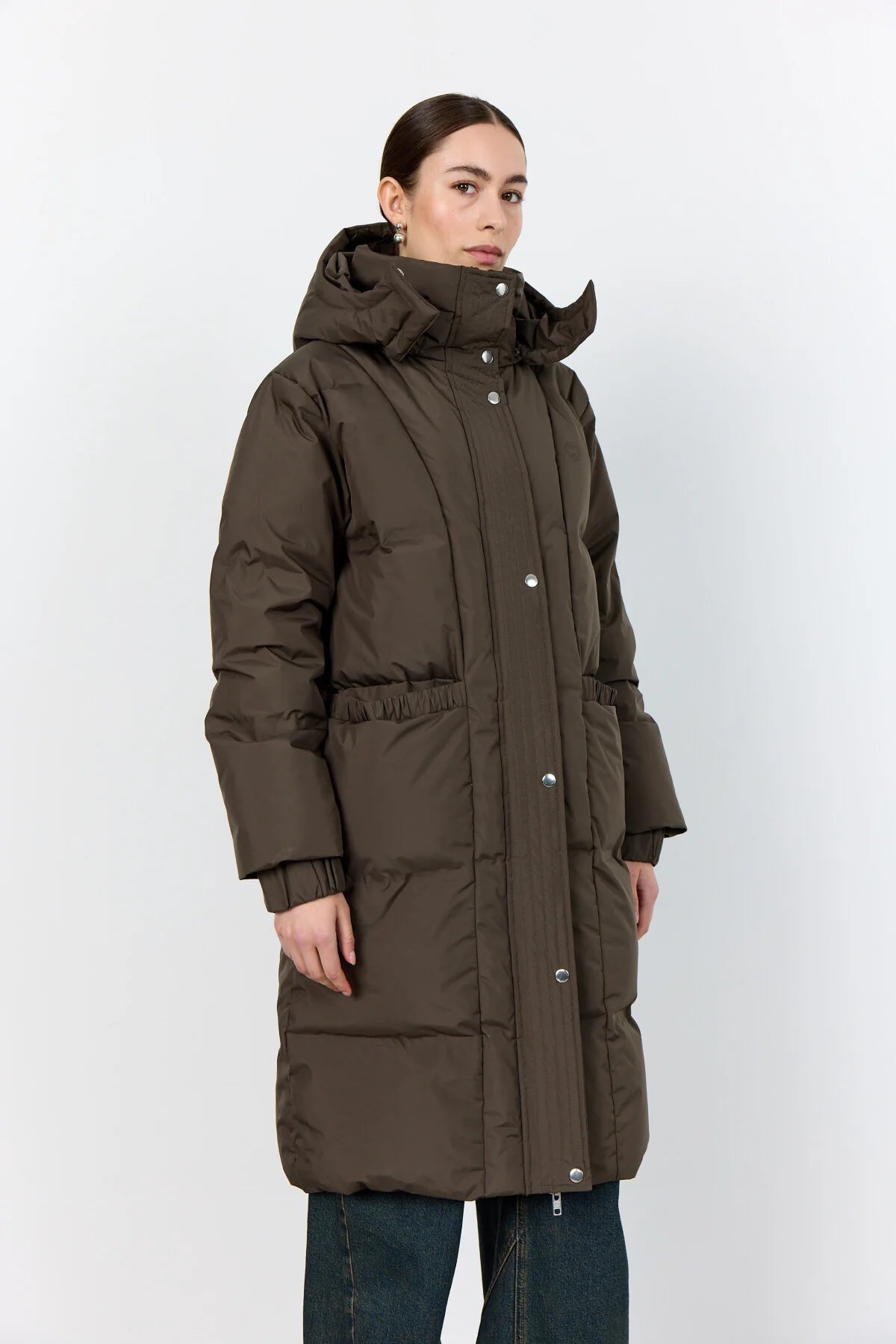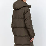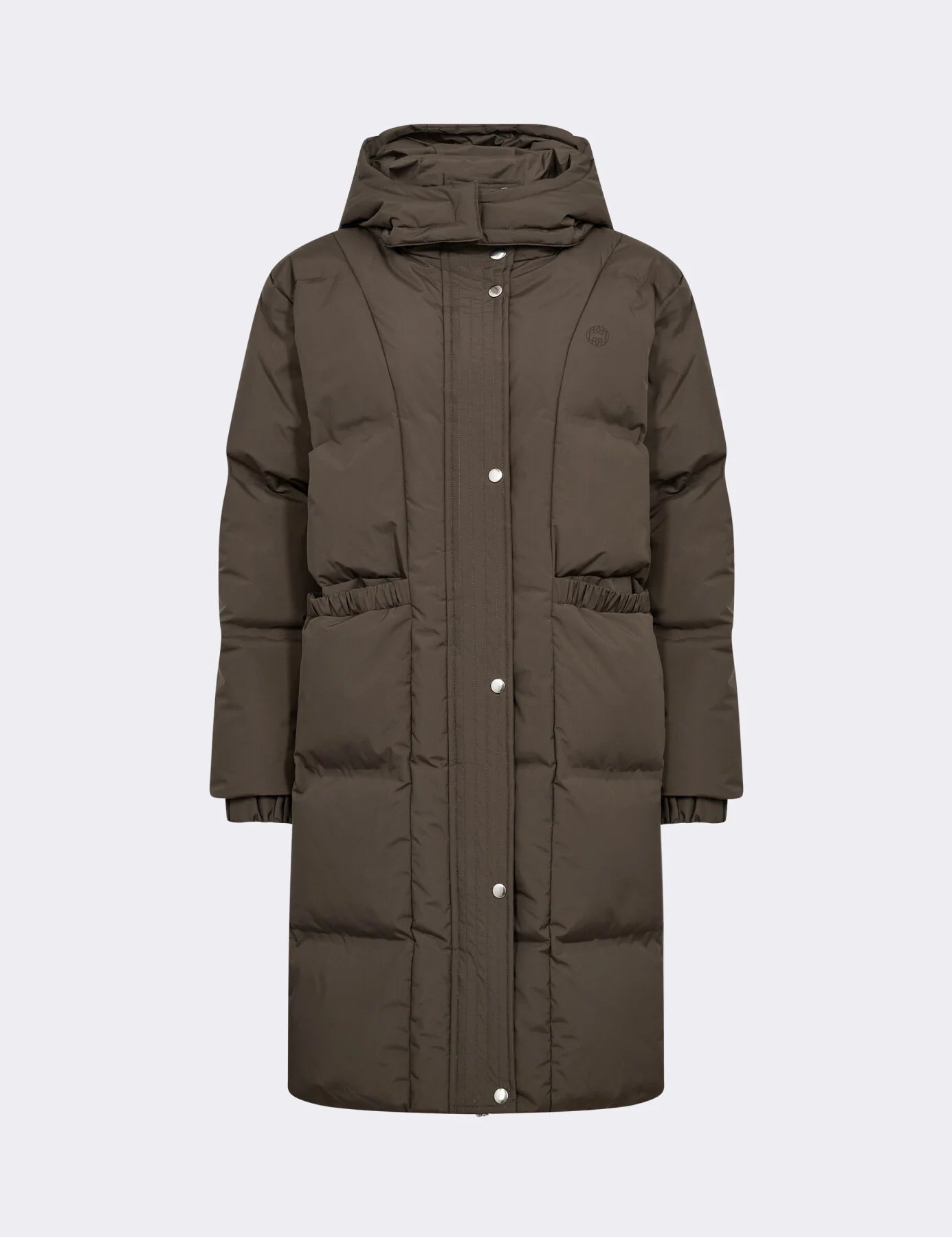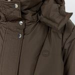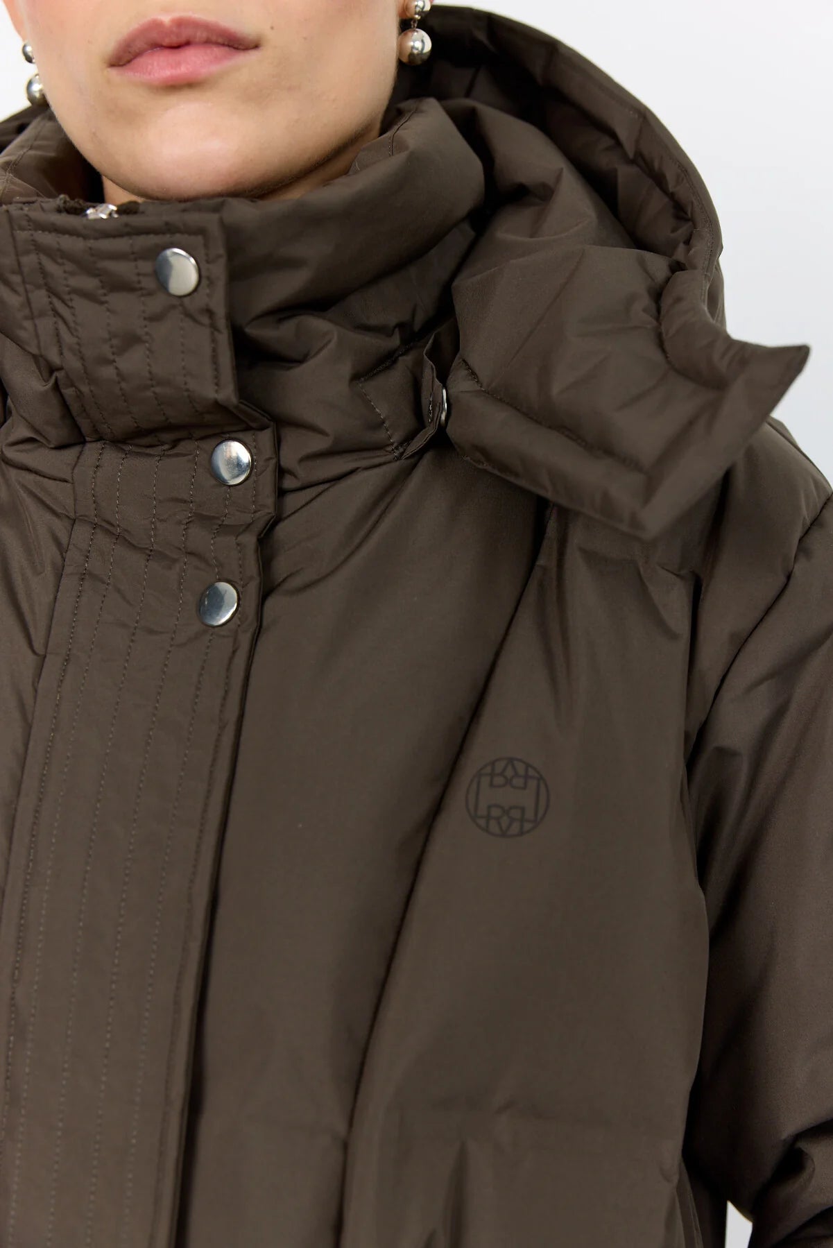 LR-MONA 6 is a warm puffer made from 100% Polyester. This coat features a high collar, buttons, a long length, and a quilted design. Pair it with boots and a scarf for a cosy outdoor look.