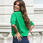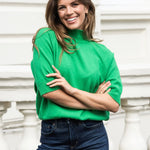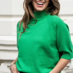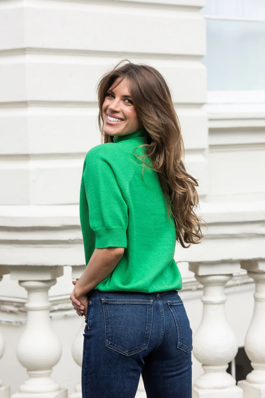 Lightweight knitted jumper with mid-length sleeves from Libby Loves. The Carrie has a turtleneck, loose fit and ribbed edging. Perfect for everyday dressing as well as paired with a mini skirt and boots for dinner on town.
