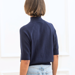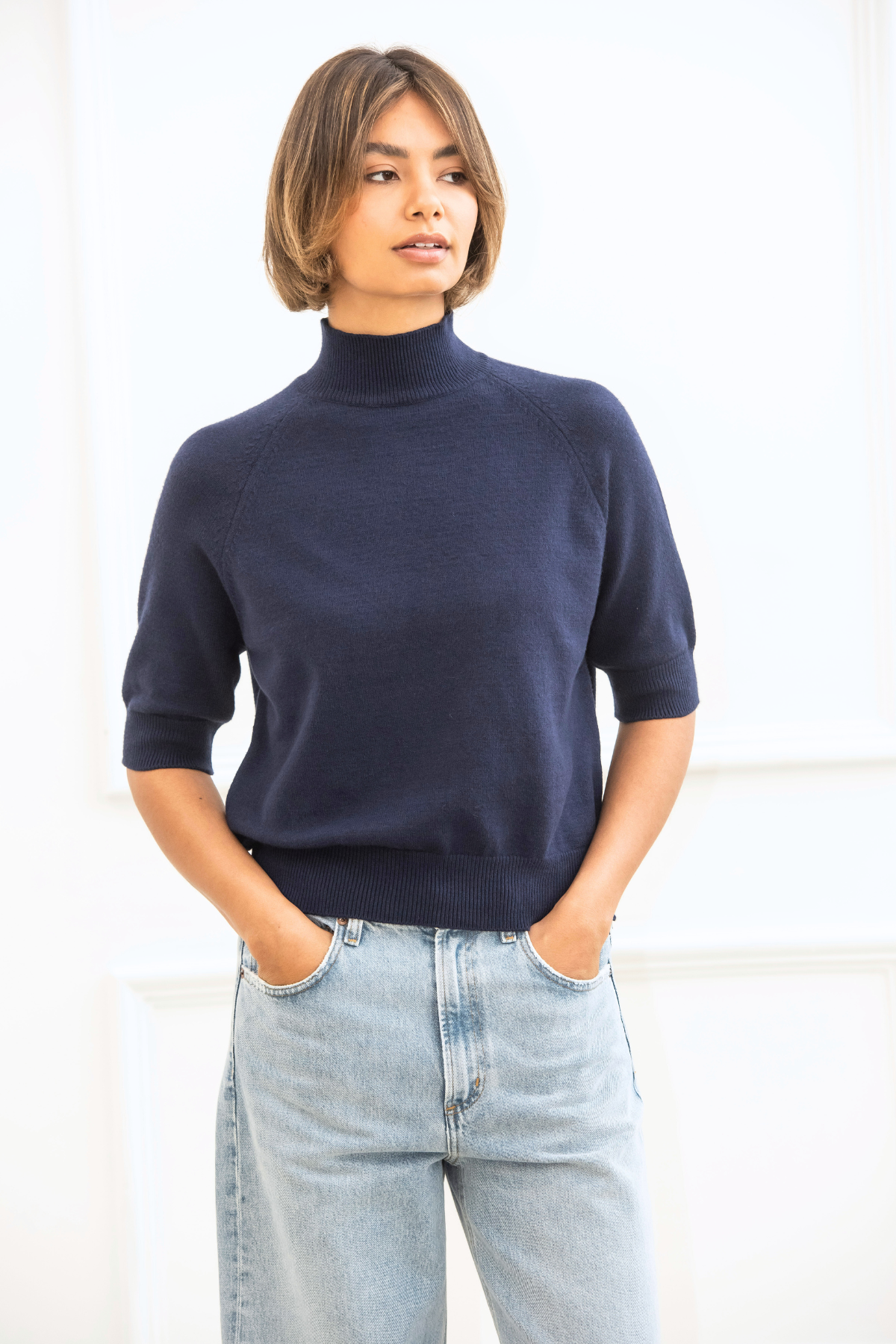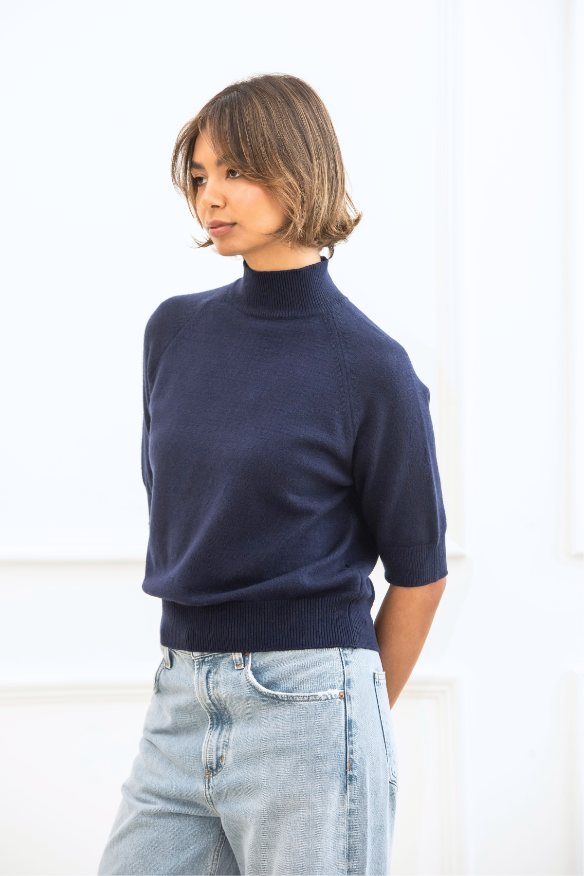 Lightweight knitted jumper with mid-length sleeves from Libby Loves. The Carrie has a turtleneck, loose fit and ribbed edging. Perfect for everyday dressing as well as paired with a mini skirt and boots for dinner on town.