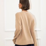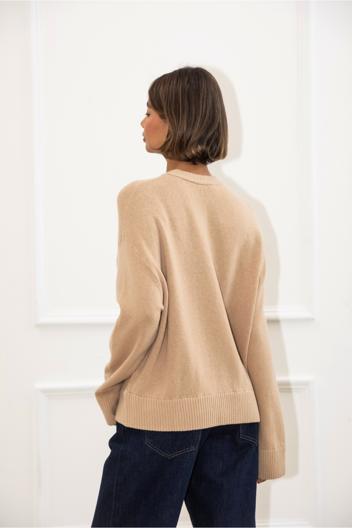 Libby Loves' new shape for AW24 - Casey the oversized crew neck. A loose fitting crew with long sleeve and dropped shoulders to create an instantly laid back effortless look. The wide ribbed trims on the hem and sleeve define the relaxed shape and slightly A-line fit perfectly. The loose fitting also allows you to easily layer shirts and tees underneath whilst keep the relaxed silhouette.