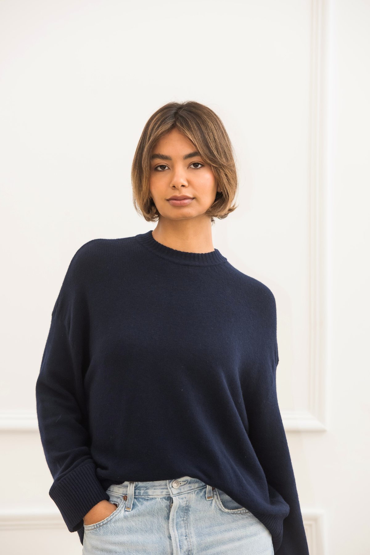 Libby Loves' new shape for AW24 - Casey the oversized crew neck. A loose fitting crew with long sleeve and dropped shoulders to create an instantly laid back effortless look. The wide ribbed trims on the hem and sleeve define the relaxed shape and slightly A-line fit perfectly. The loose fitting also allows you to easily layer shirts and tees underneath whilst keep the relaxed silhouette.