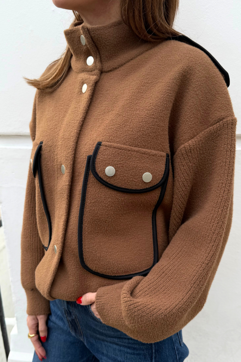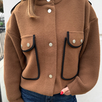 By popular demand, Libby Loves presents the first drop of the Winter ’25 collection - the best-selling fuzzy jacket, now available in more colors and styles. Introducing the Farrah Jacket, featuring contrasting black trim along the shoulder patches and pocket edges for a modern touch. Ribbed sleeves add a chic finish. Available in Black, and Caramel.