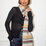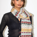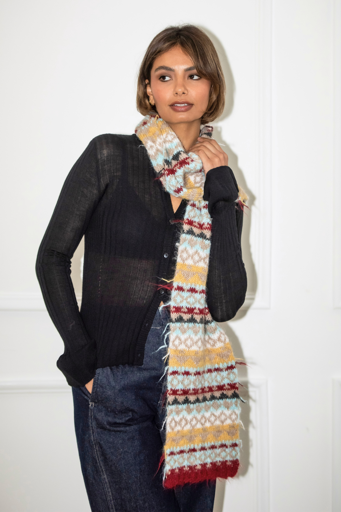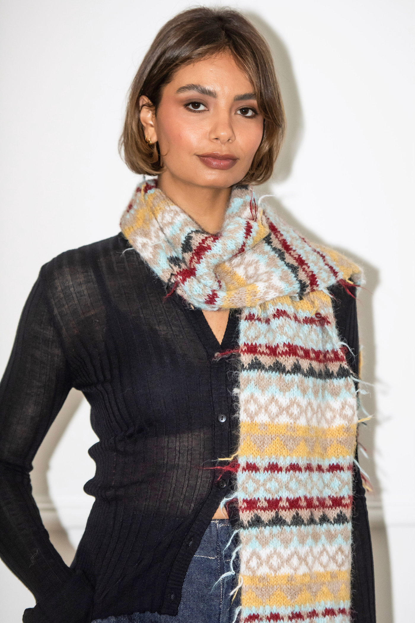 The Frankie Scarf is the perfect accessory for the upcoming Christmas season. Its bold striped design features vivid hues of turquoise, cream, red, and yellow. Made from a soft knit fabric, it delivers exceptional comfort and reliable warmth.