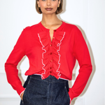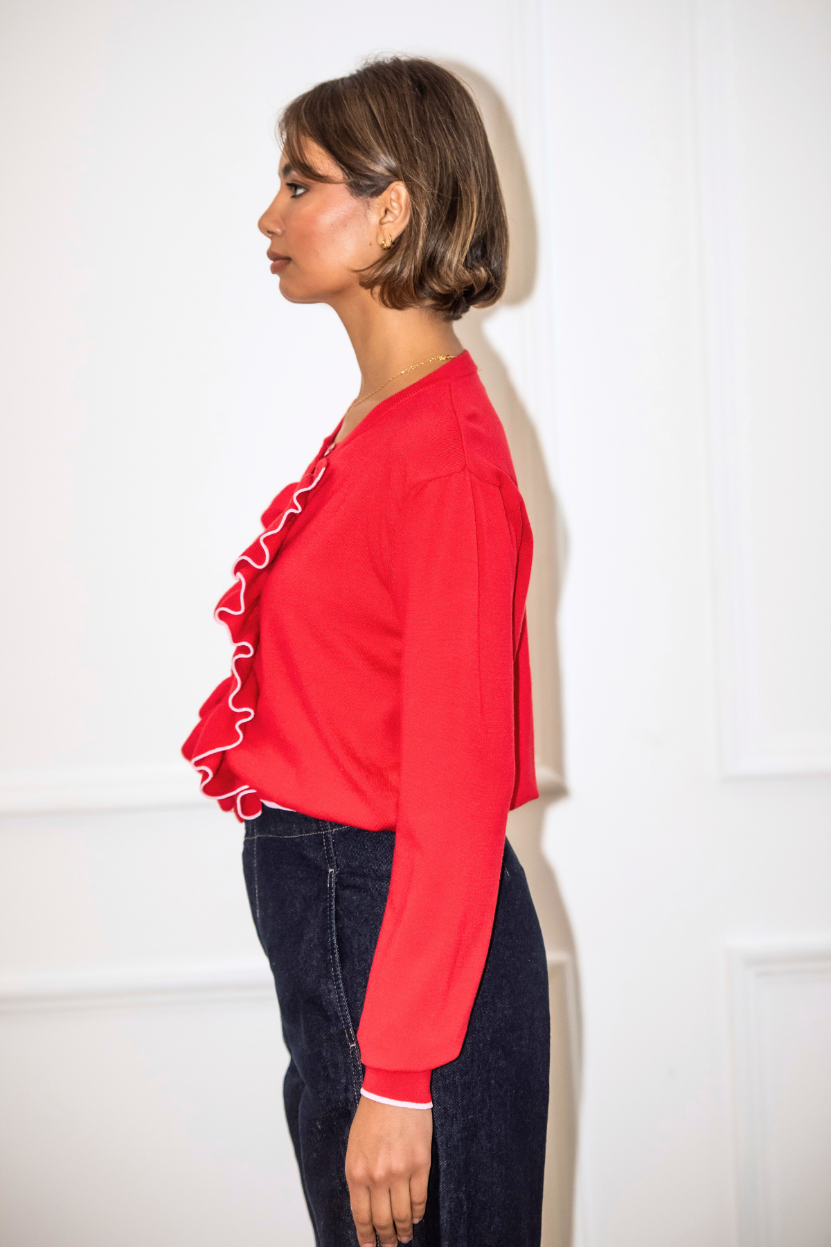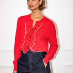 The Gianna Frill Cardigan is the perfect addition to your festive wardrobe. Featuring delicate ruffle detailing along the front, this cardigan adds a touch of femininity to any outfit. Crafted from a soft viscose blend, it offers comfort and a flattering fit, making it an ideal choice for both casual and dressy occasions.