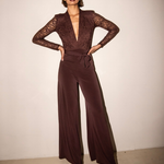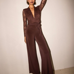 Our most-loved jumpsuits are back—and they’re cooler than ever for this party season. This on-trend lace Taylor jumpsuit features a V-neck wrap front, long sleeves, wide legs, and a waist-defining tie belt. It’s a great alternative to a dress—the ultimate party piece, now with a stylish lace twist. Available in black and brown.