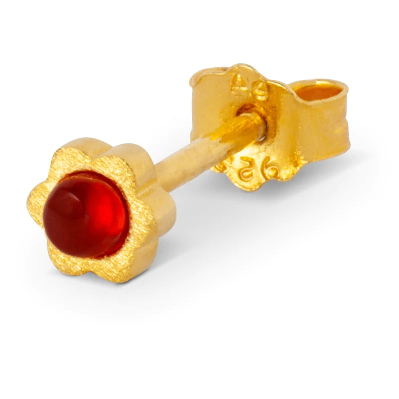 This cute and tiny BLOMST ear stud blooms all year round. Comes gold-plated with a red Agate gemstone which makes it great fun to mix with your other earrings.