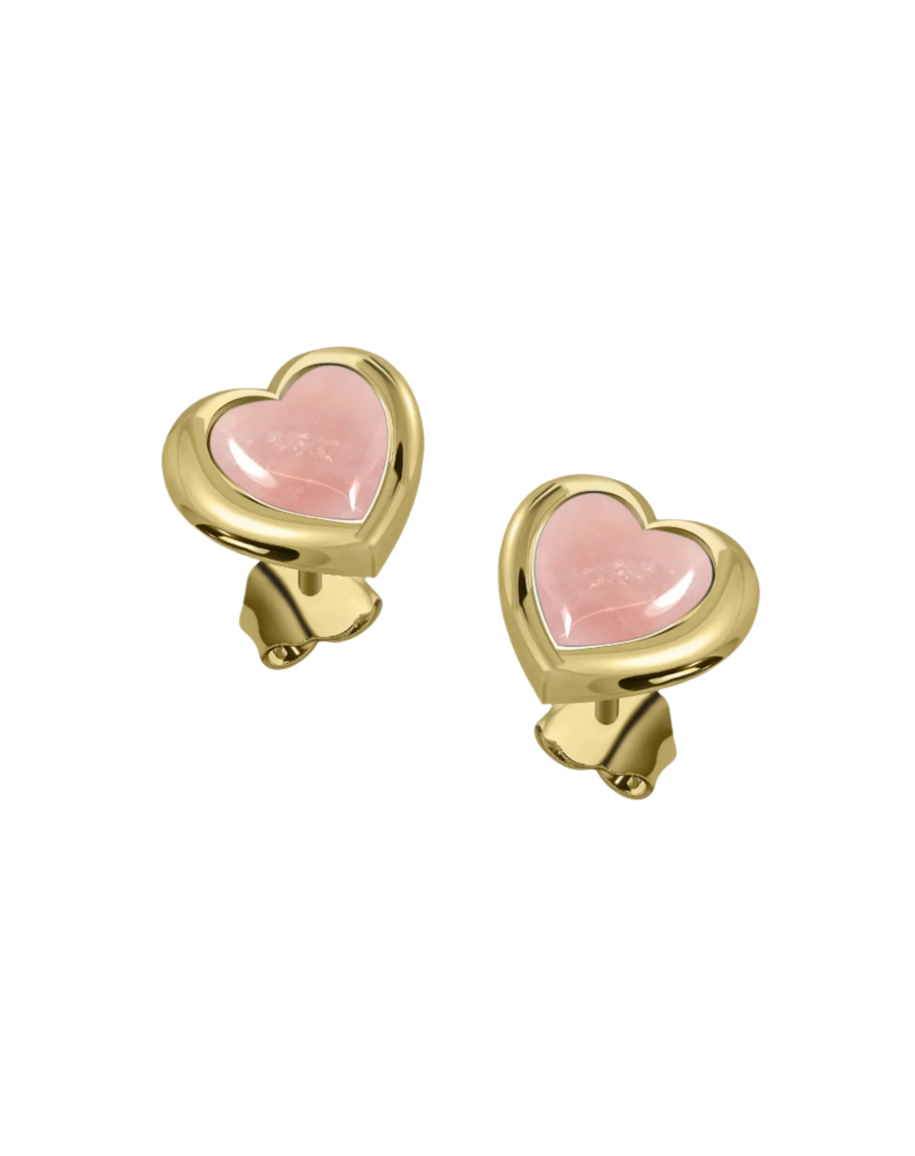 Lovers Heart Stud Earrings - Rose Quartz