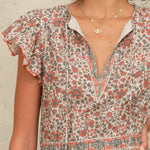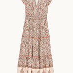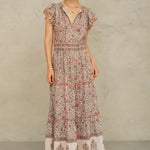 Designed in delicate summer floral and boarder print the Della maxi dress is made from cotton.  It is detailed with frill sleeves, tiers and an elasticated waist to give a free- flowing relaxed fit.