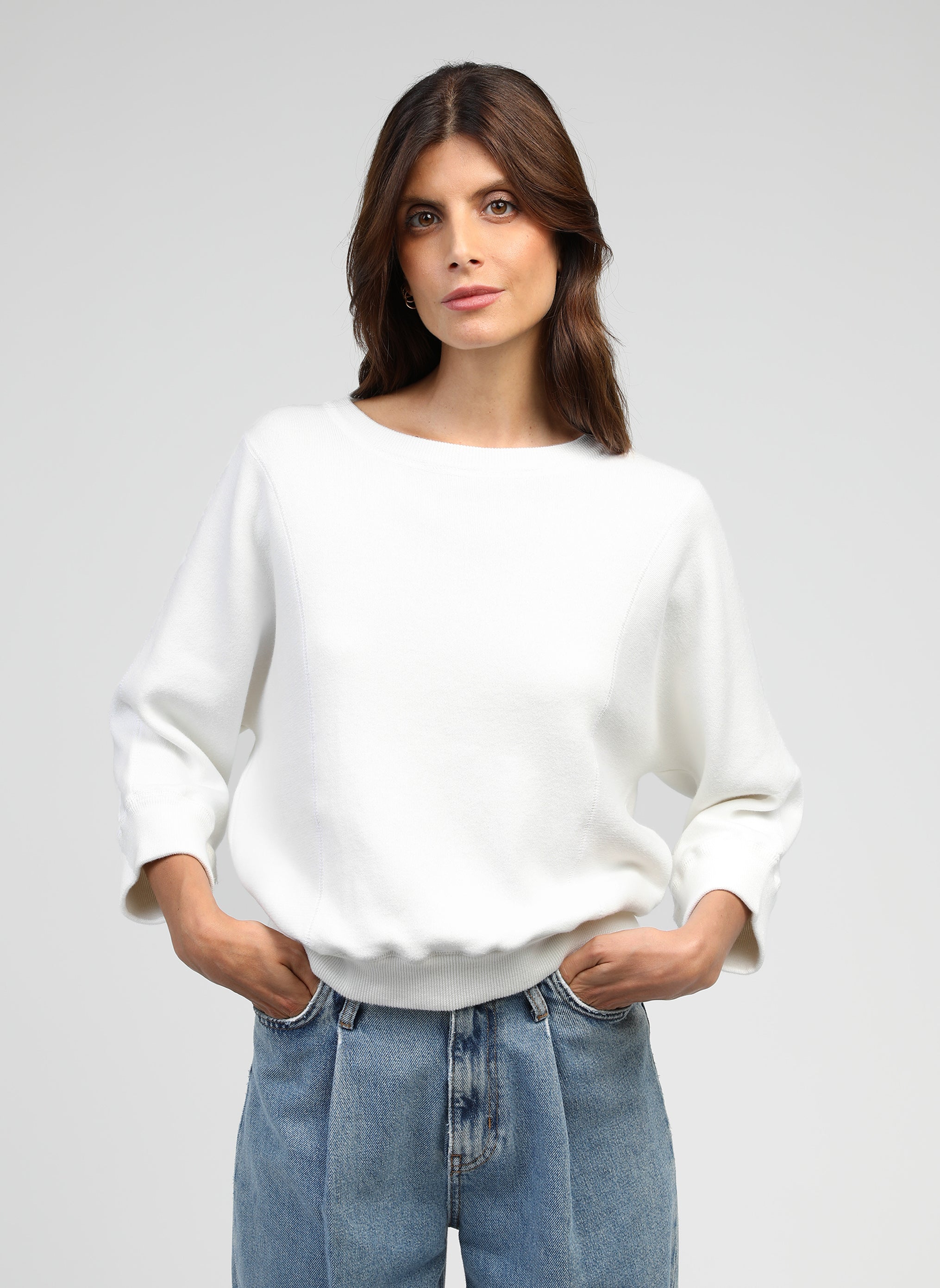 Loose fit sweatshirt with 3/4 sleeves and ribbed hem in organic cotton.