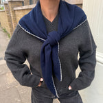 Triangle scarf in dark navy with contrast seams. Tie it like a classic handkerchief or why not try it around your head for when the cold bites.