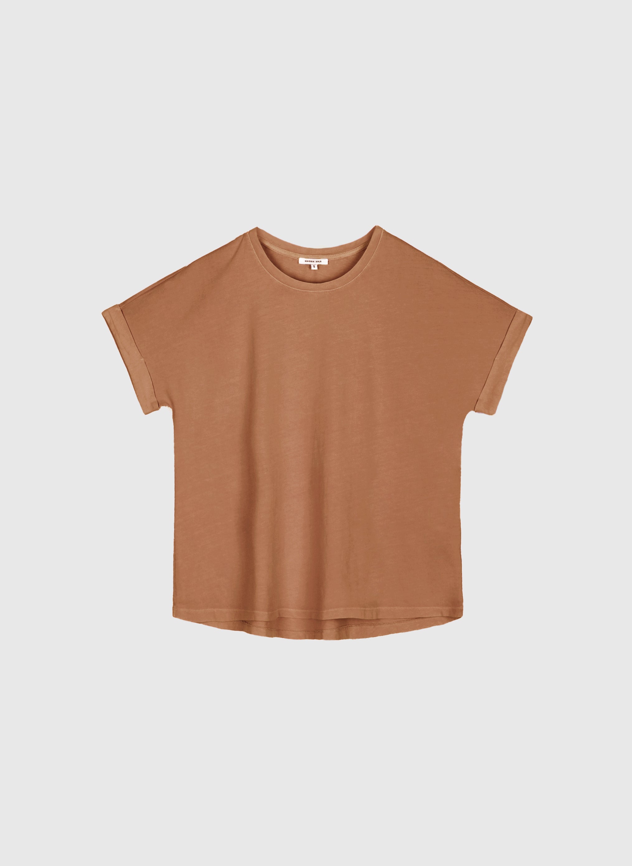 Loose fit T-shirt with round neck, dropped shoulders and fold-up edge on sleeve.