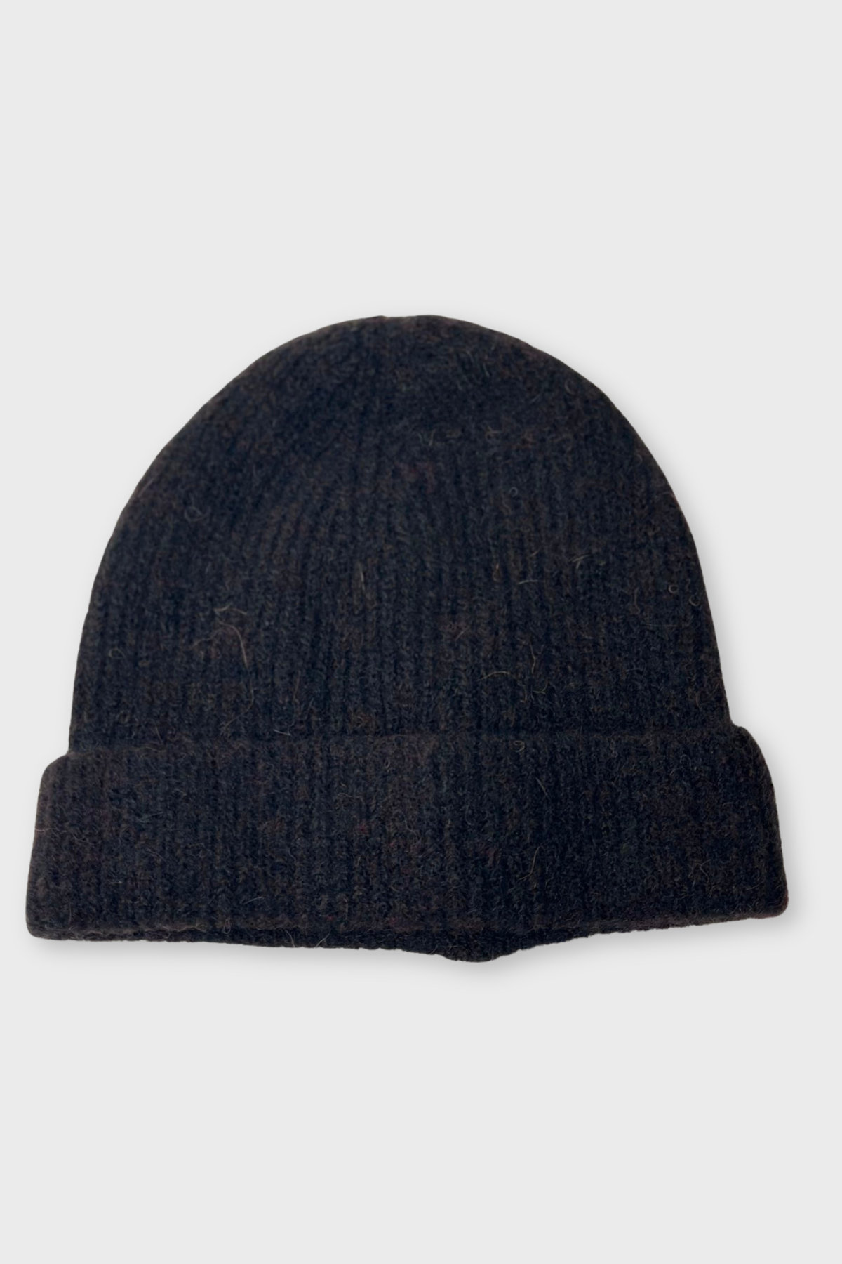 Rib knitted hat with turnup fold. Super soft and warming for colder weather.