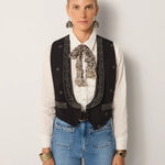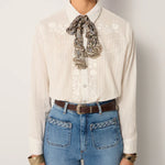 Styled at the collar of the Kerry Blouse, looped into a bow — a gesture both romantic and insouciant.