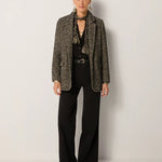 Clean tailoring enhances the high-rise cut, while the fabric’s softness ensures wearability without losing structure. A balance of comfort and polish.