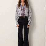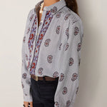 Styled with Jerry Trousers and Dakota Brown belt — grounded tailoring softened by embroidery. It also layers well under knitwear, where its pattern adds dimension.