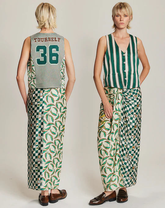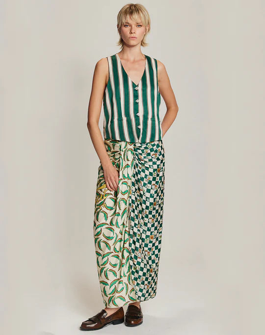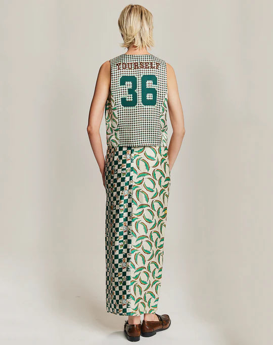 Deep V-neck button down waistcoat in Me369's Sporty Jade pattern.