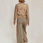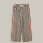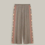 Cashmere, cotton, metallic, wool blend knitted trousers. The Michelle style features an elastic waist and wide leg.