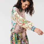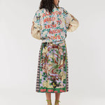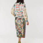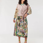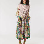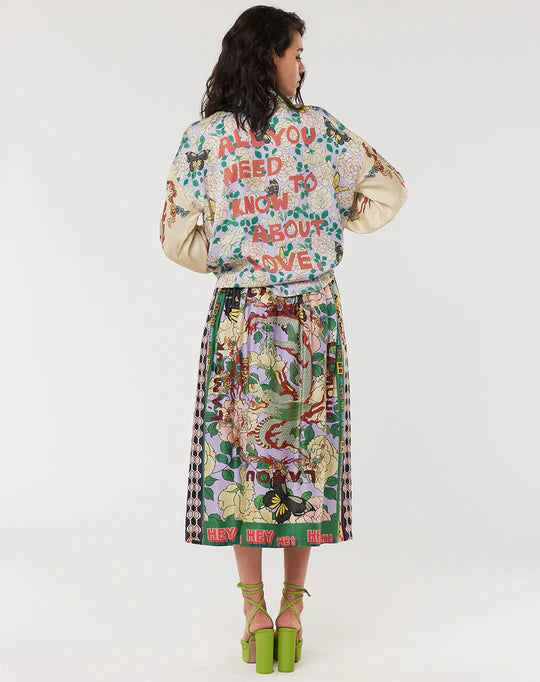 Me369's best selling midi skirt, now in the new multicoloured L'Amour print. Elastic waist.