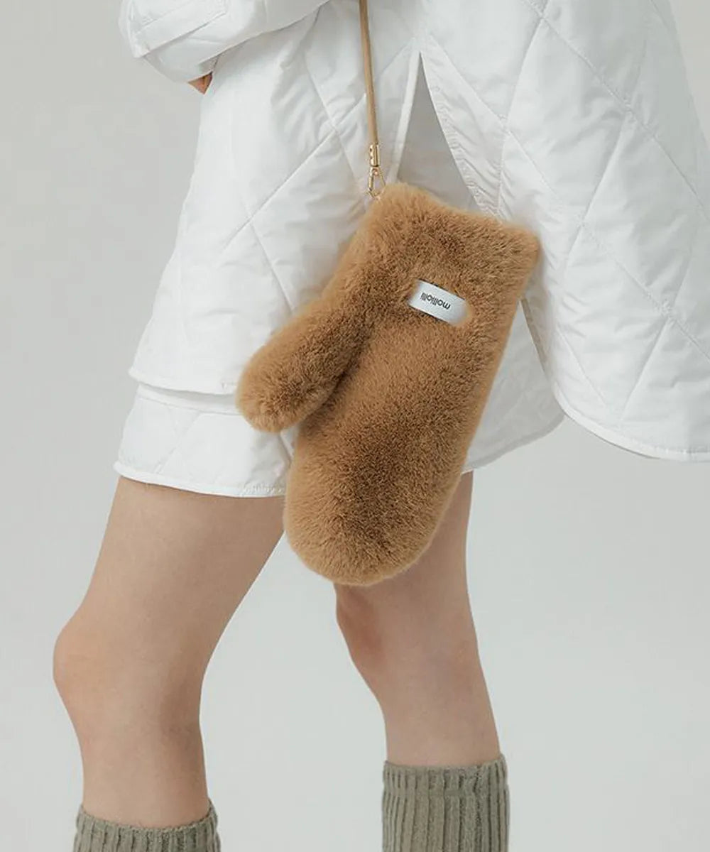 Cosy reversable mittens, one side in faux fur and the other faux shearling.