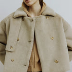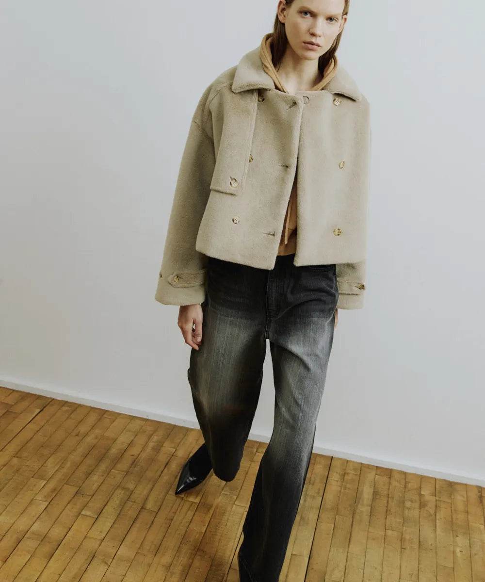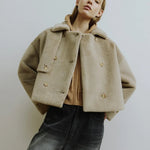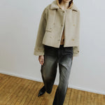 A cropped jacket with playful trench-inspired details. Its shorter length offers a light and comfortable fit, while the versatile collar styling completes a chic yet casual mood.