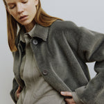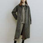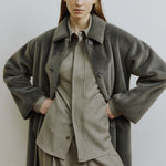 Molliolli's Lungo coat is back, this year in a muted grey. Long with button closure and collar. Super soft faux fur. The single-breasted design creates a simple yet luxurious atmosphere, making it versatile for styling from daily looks to formal occasions.