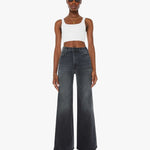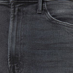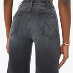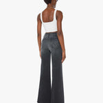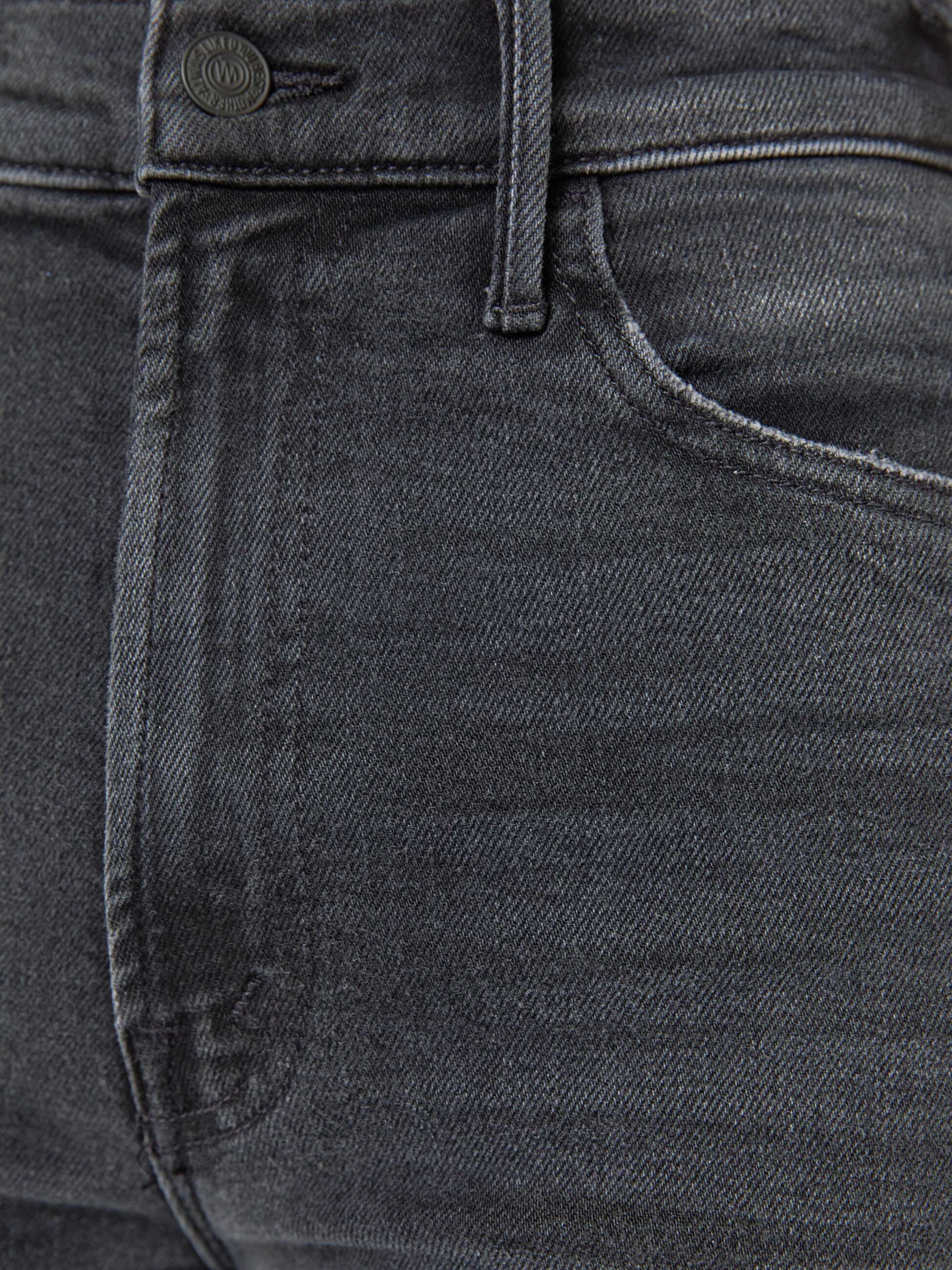 Hell no. 70s-inspired wide leg jeans with a high rise, 32-inch inseam and a clean hem. Designed in a stretch cotton blend, Not Today Satan is a black wash with whiskering, fading and tonal hardware.