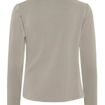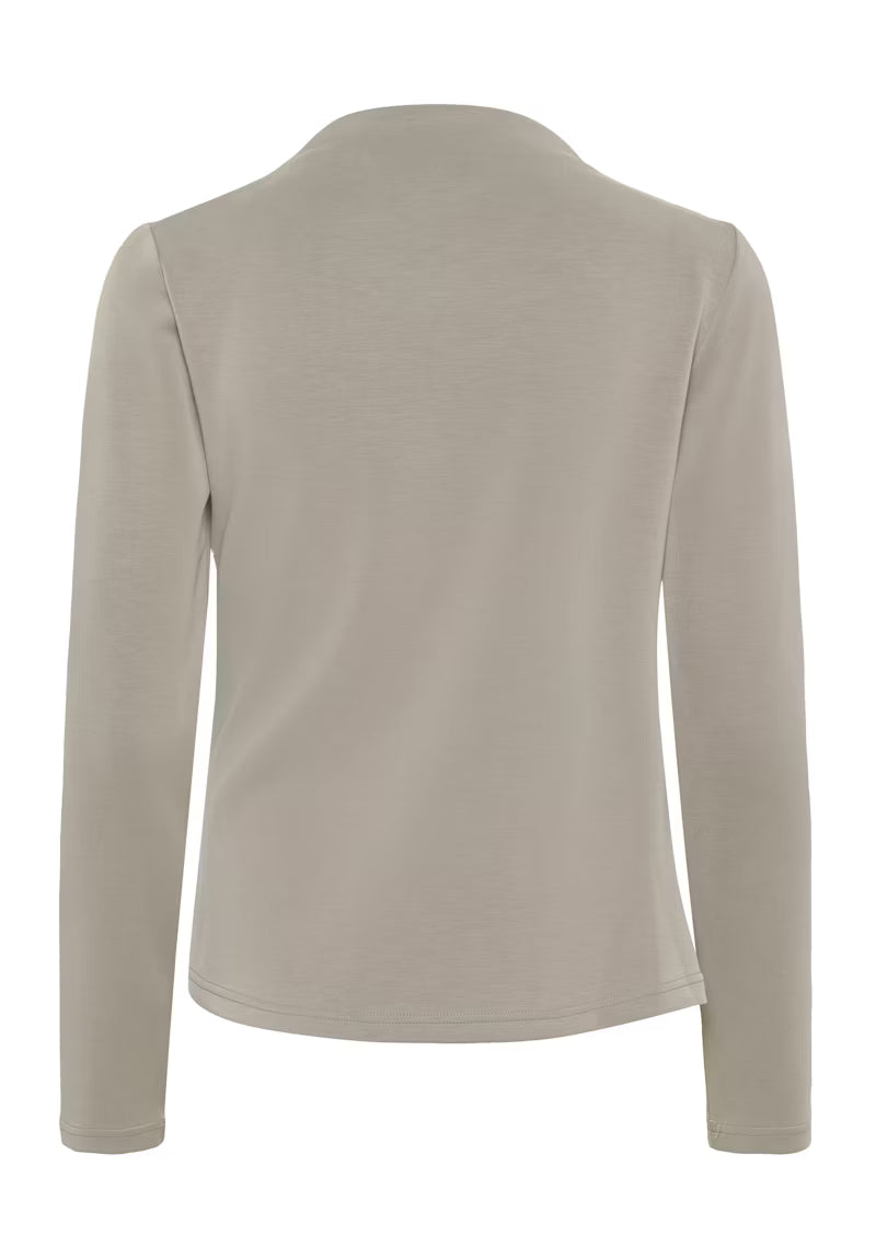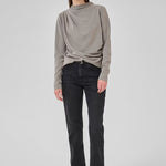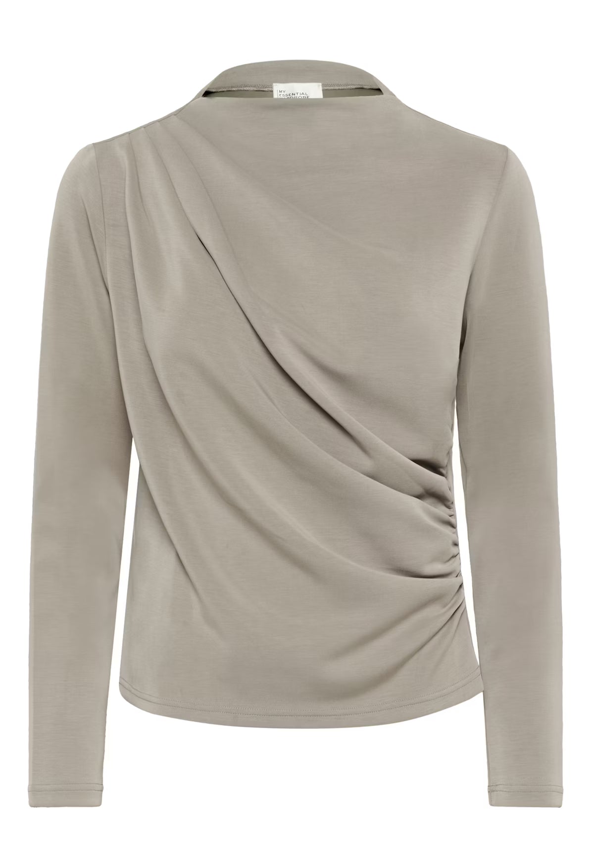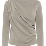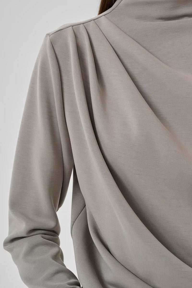 This women's long sleeve top features a relaxed fit with a draped front and soft silhouette. Crafted for comfort, it has a high neckline and versatile styling that transitions easily from daywear to evening looks.