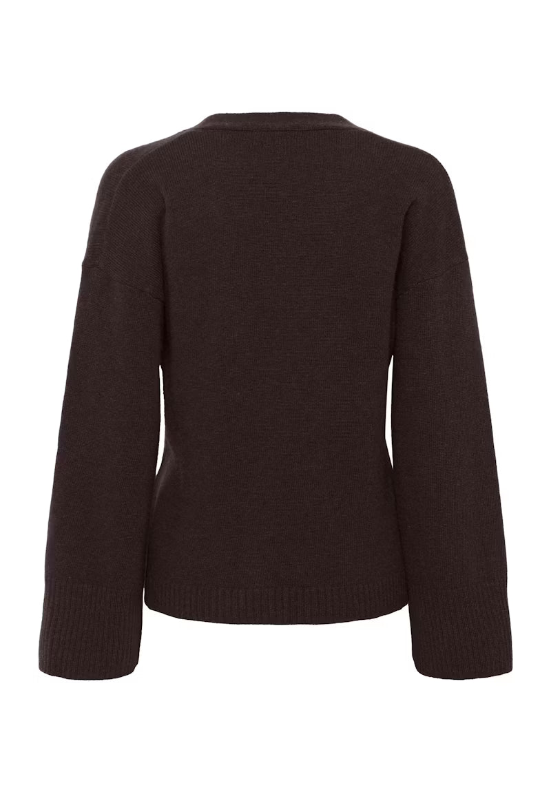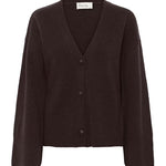 This cardigan offers a relaxed fit, dropped shoulders, and ribbed cuffs for comfort. Designed with a V-neckline and button front, it is a versatile addition to any wardrobe for layering or standalone wear.