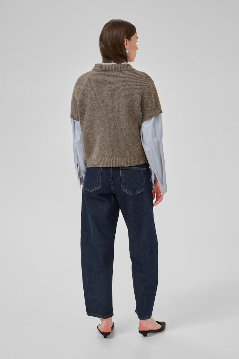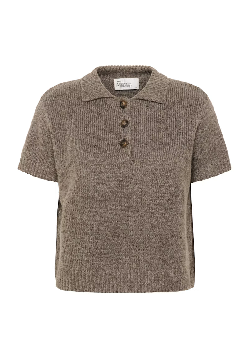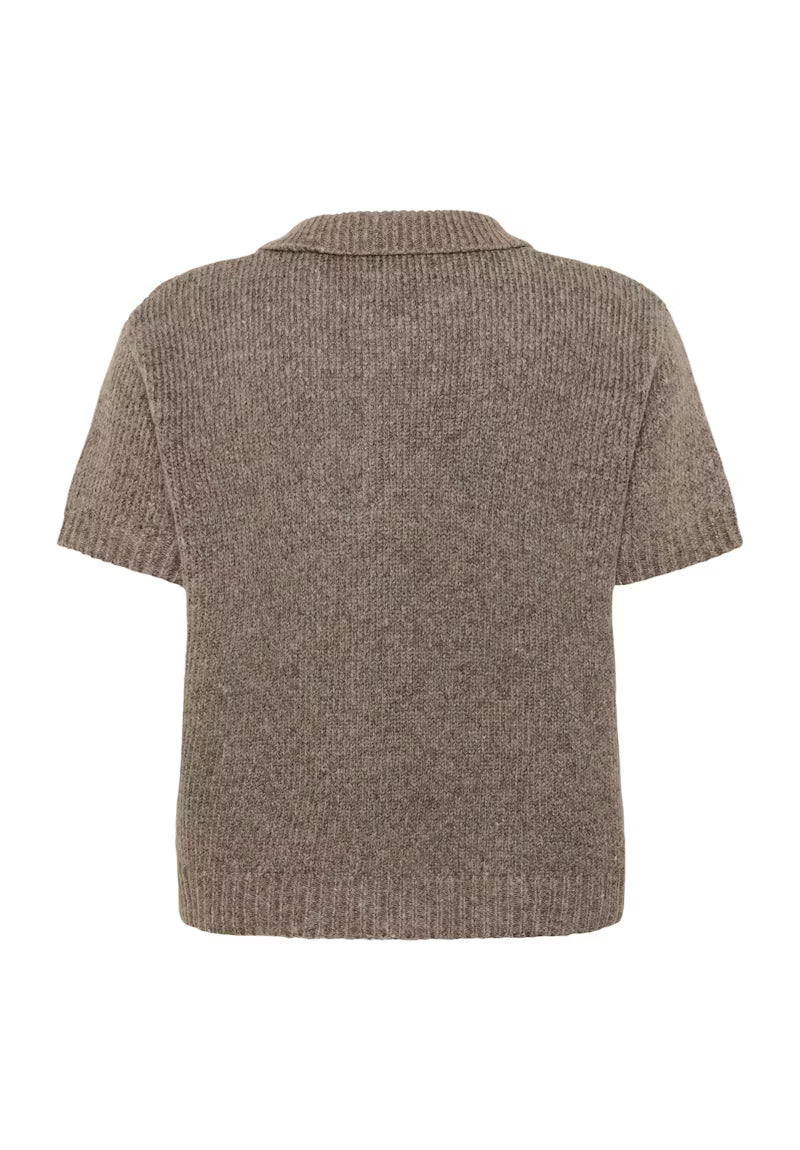 This short-sleeved knit polo top features a relaxed fit, classic collar and button placket, offering effortless style and comfort for everyday wear. Ideal for layering or solo styling across various occasions.