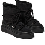 Ankle boot in double face sheepskin and cross lacing.
