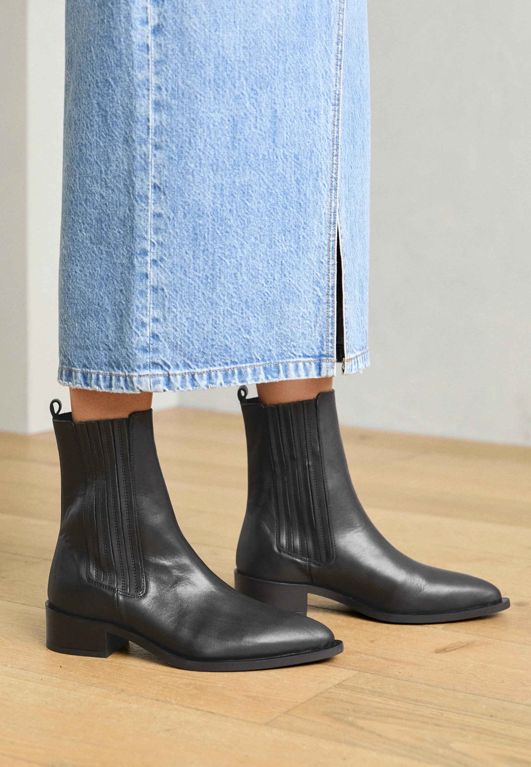 The Shani 1 ankle boots are a chic and adaptable choice for any outfit. Crafted from premium leather, they showcase a sleek silhouette with a pointed toe and a sturdy block heel, offering both style and comfort in one versatile design.