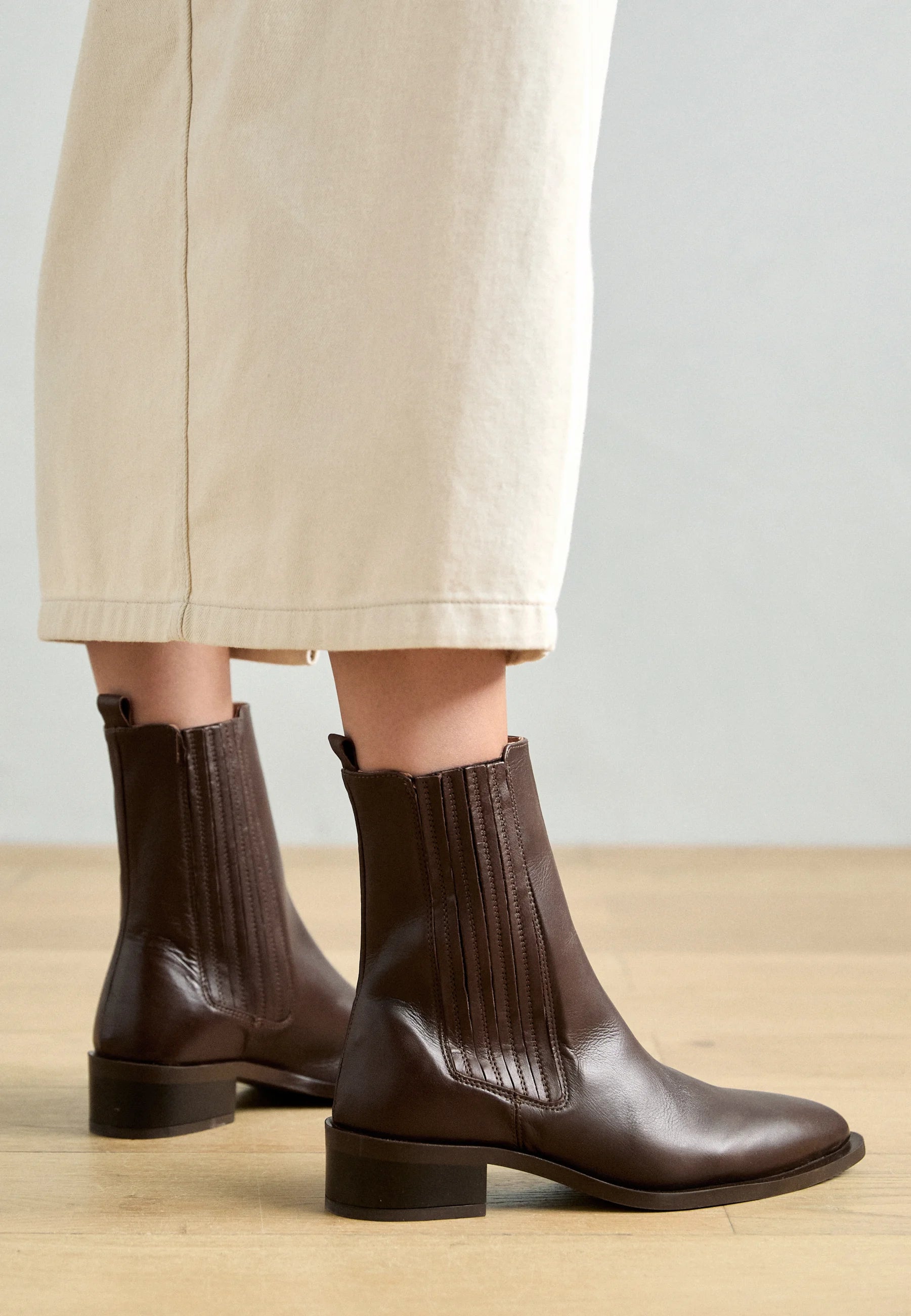 The Shani 1 ankle boots are a chic and adaptable choice for any outfit. Crafted from premium leather, they showcase a sleek silhouette with a pointed toe and a sturdy block heel, offering both style and comfort in one versatile design.
