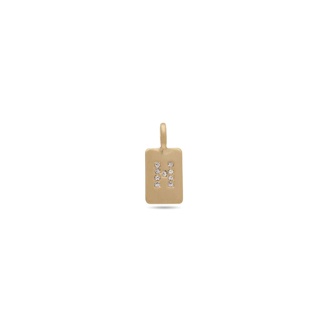 Simple and minimalist letter pendant with sparkling crystal stones, illustrating the letter H.