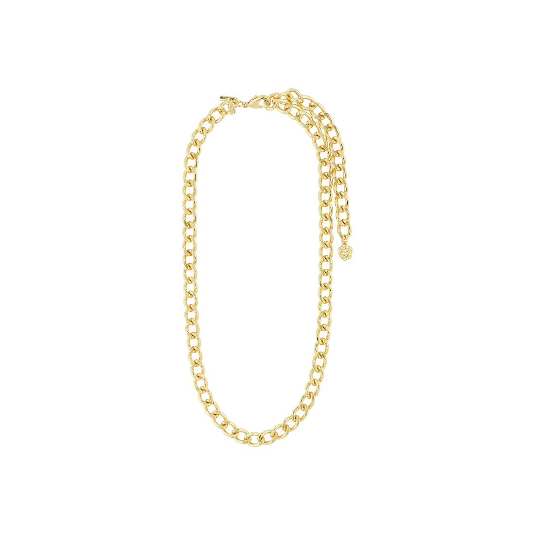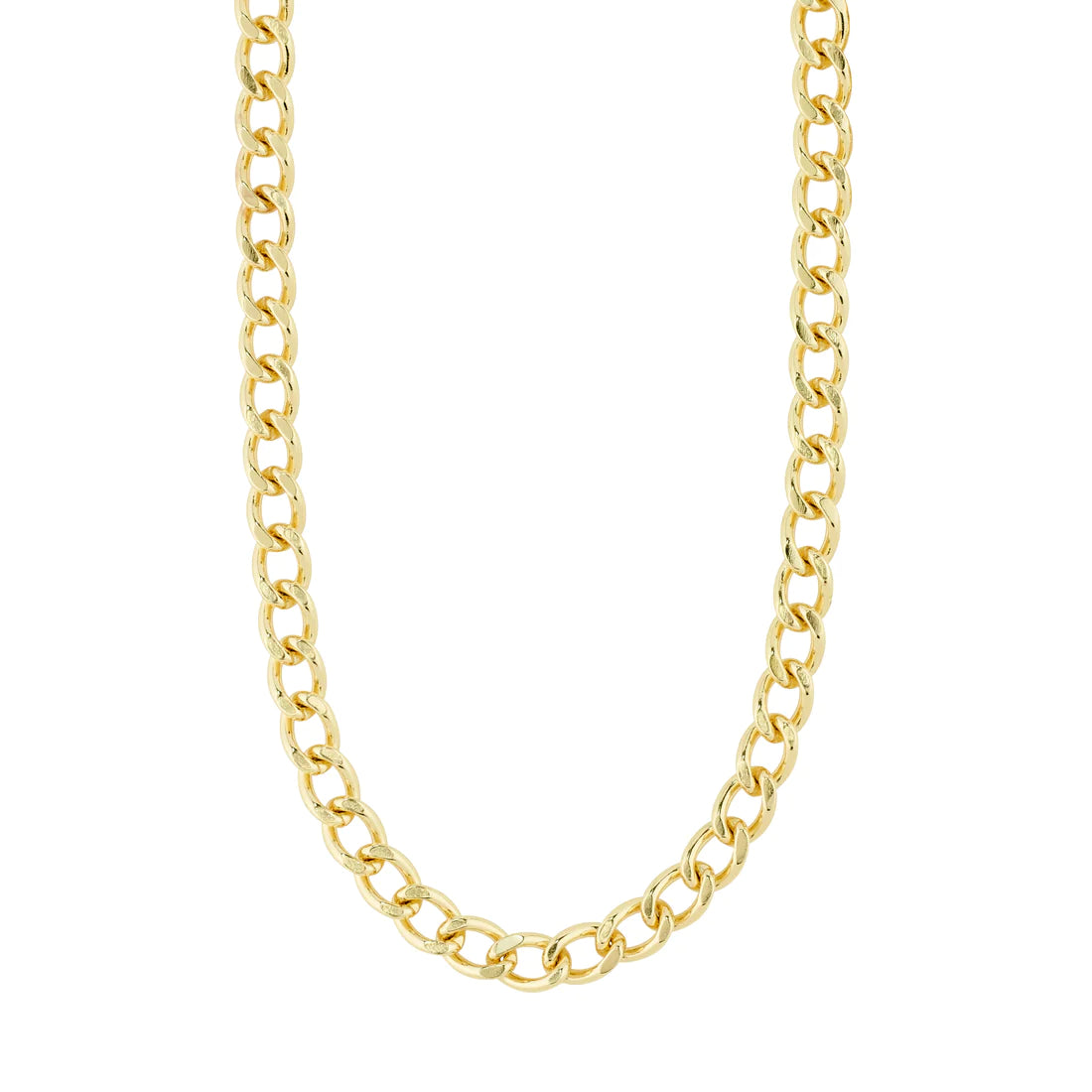 Curb chain statement! Gold-plated curb chain in an elegant design - perfect for adding your favourite charms. The chain cultivates an edgy and industrial look with a powerful curb chain design that can be worn short and close to the neck, as a longer chain or as a stylish Y-chain. Find your inner urban vibes and style with your favourite charms for a true power look. The chain measures 50 cm and can be adjusted in length according to mood and occasion. Let your inner strength shine and enjoy the fact that the chain is made from min. 75% recycled material with care for our shared planet in mind.