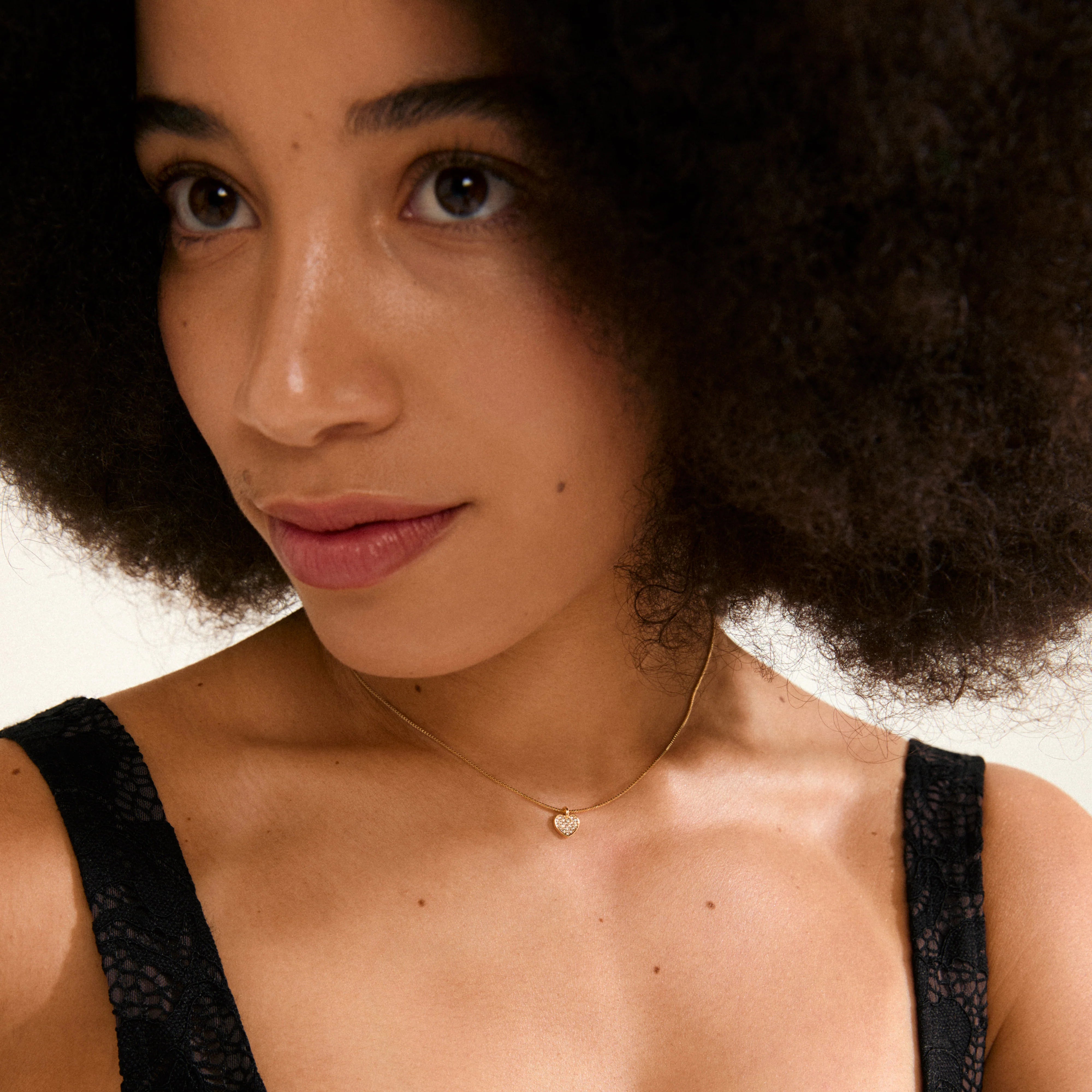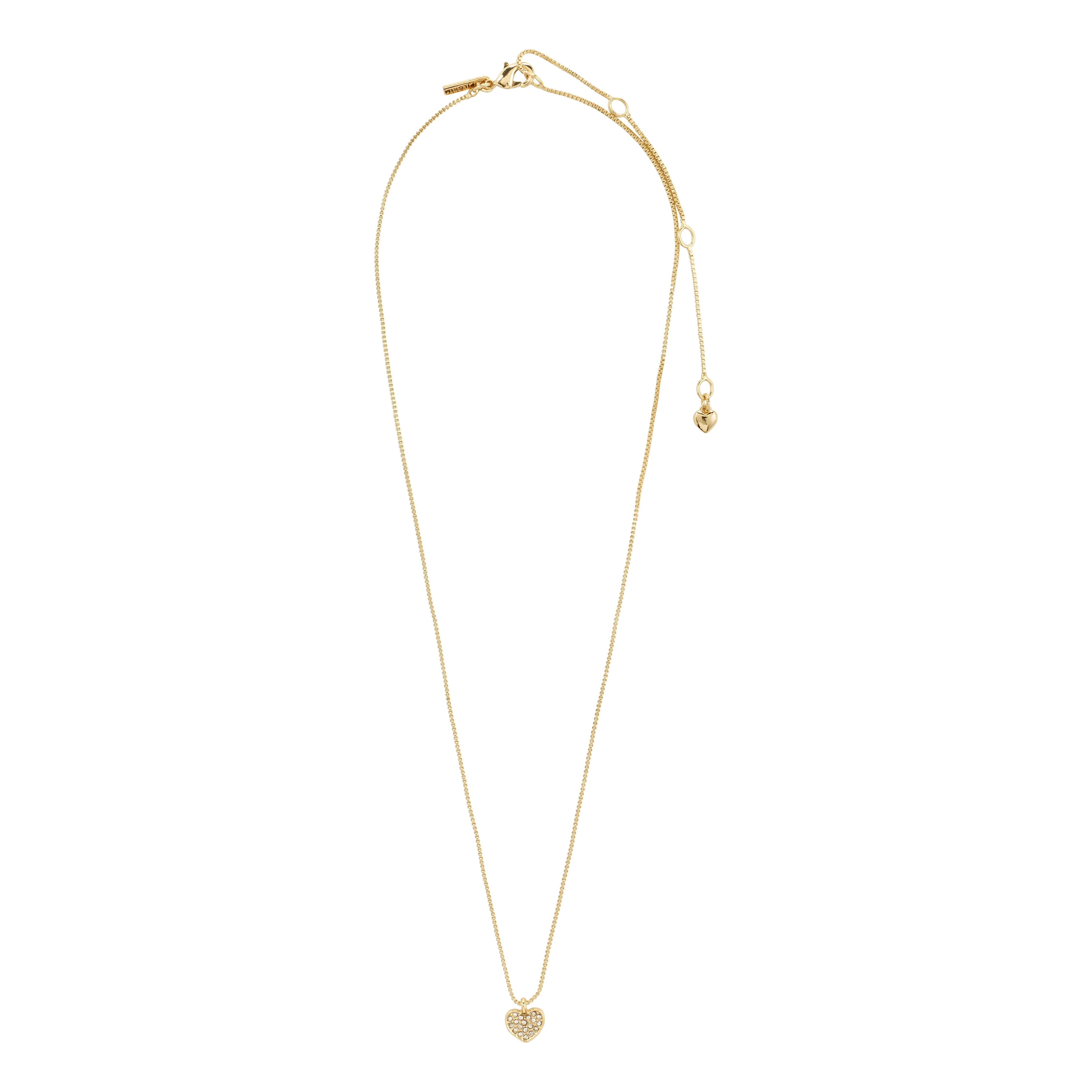 Wear your heart with sparkle! This elegant gold-plated necklace features a petite heart pendant adorned with dazzling Preciosa crystals, adding a touch of romance and sophistication to your look. Ideal for everyday wear or special occasions, providing just the right amount of shine. Wear it solo for an understated statement or layer with other chains for a trendy look. The perfect go-to piece for any occasion! Measuring 40 cm with a 9 cm extension chain, this necklace is crafted from 97% recycled materials, with love for our planet.
