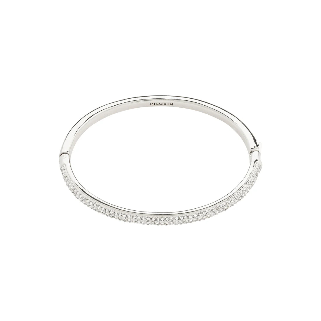 Visualize, focus, and execute! Silver-plated bangle from Pilgrim's FOCUS collection, which is distinguished by the stylish scandi style that mixes simple elegance with glam vibes from the sparkling Preciosa crystals. Add a sophisticated touch to this season's knitwear and soft textiles. With the bangle, which is made from 94% recycled material, it's about more than just style - it's about fashion with care. The smart click clasp makes the bangle easy to use in everyday life.