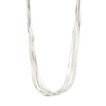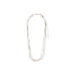 The silver-plated KIRA necklace is the perfect accessory to showcase your unique perspective. The necklace consists of five flat snake chains gathered in one clasp. A layered design that offers a distinctive sculptural shape and sparks a bold, innovative look. Your go-to for everyday fabulousness. And guess what - they are made from 99% recycled material, - that's fashion with a conscience.