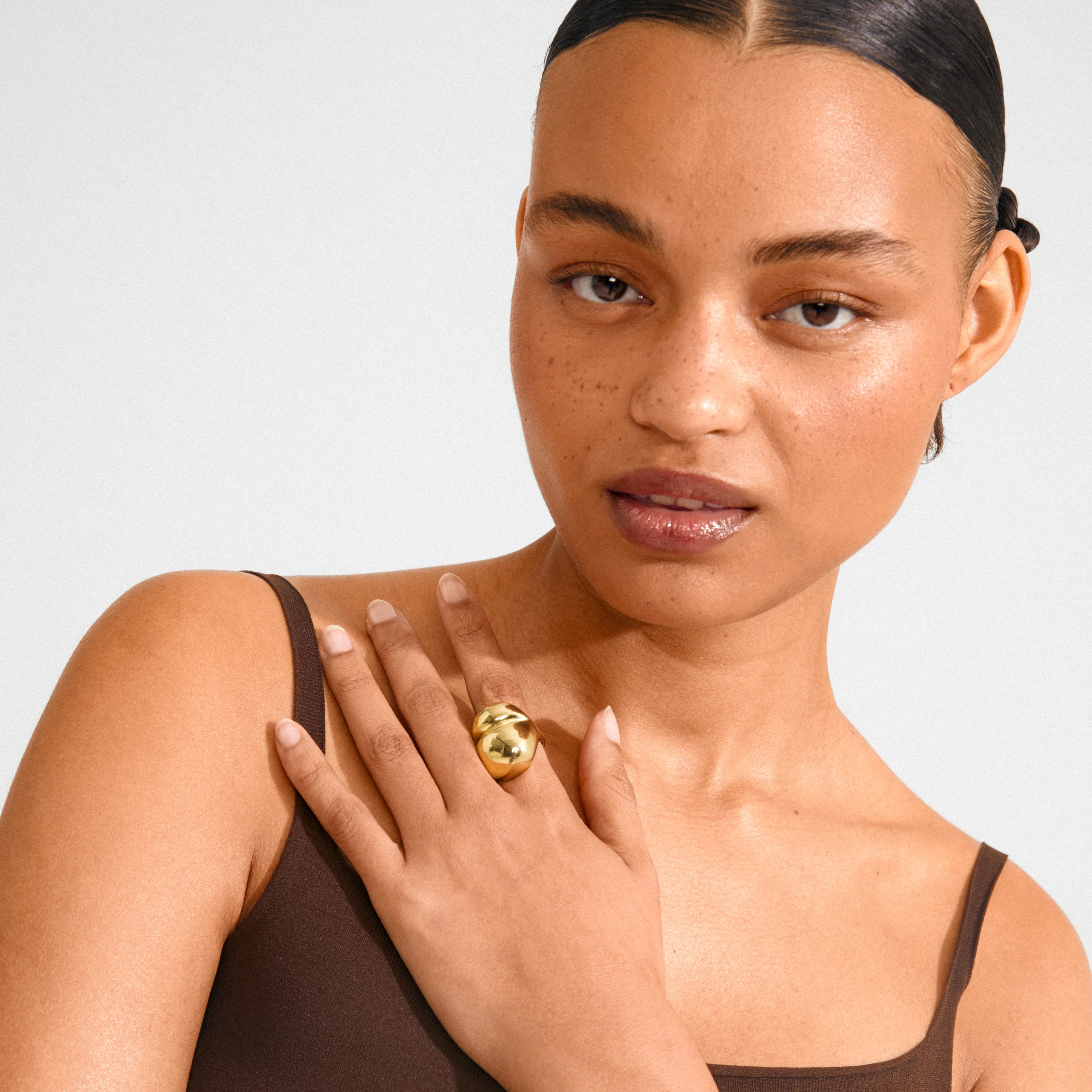Style that speaks volumes! The MADDIX ring from Pilgrim is a true statement piece that combines soft shaped forms with a powerful attitude. The gold-plated ring features a chunky, wavy design that adds an exclusive and artistic touch to your look. Perfect for elevating your everyday style or pairing with other rings for a stacked power vibe. Style it with minimalist basics to let the ring shine, or mix with more chunky accessories for an on-trend, high-impact look. The ring is adjustable in size and made from 99% recycled materials – fashion with care for the environment.